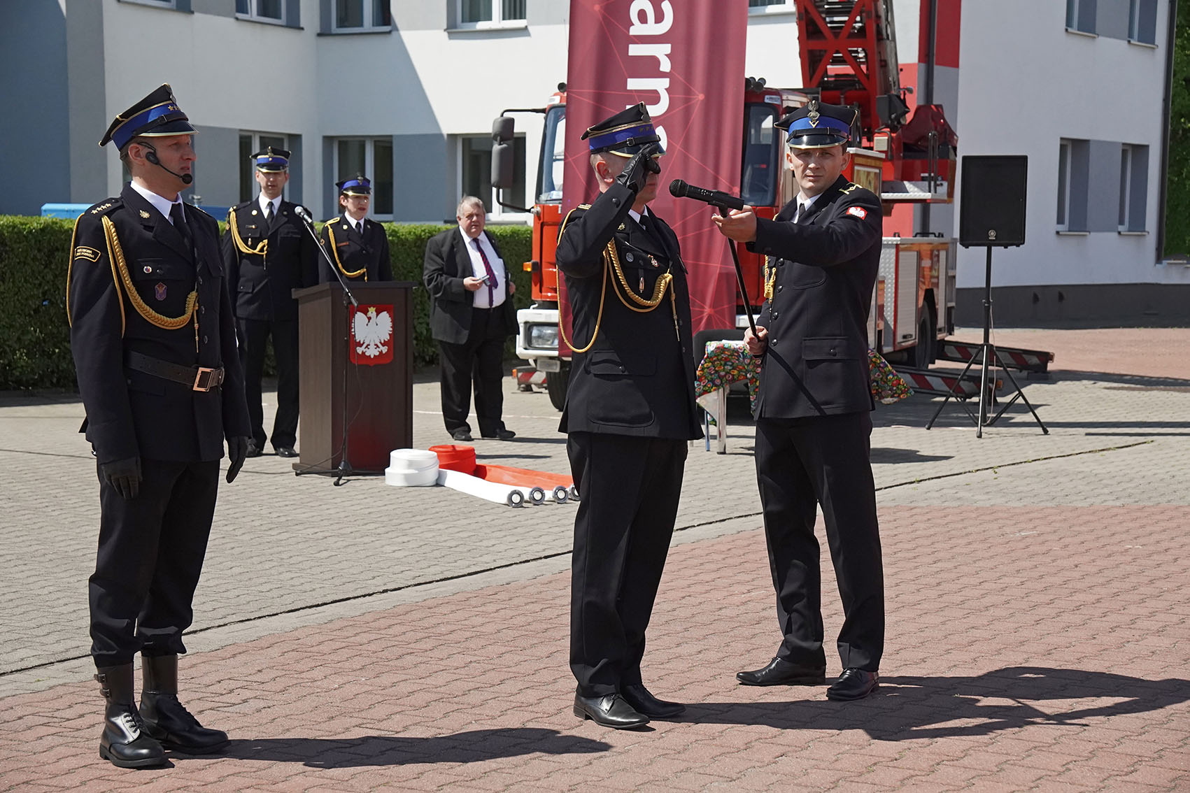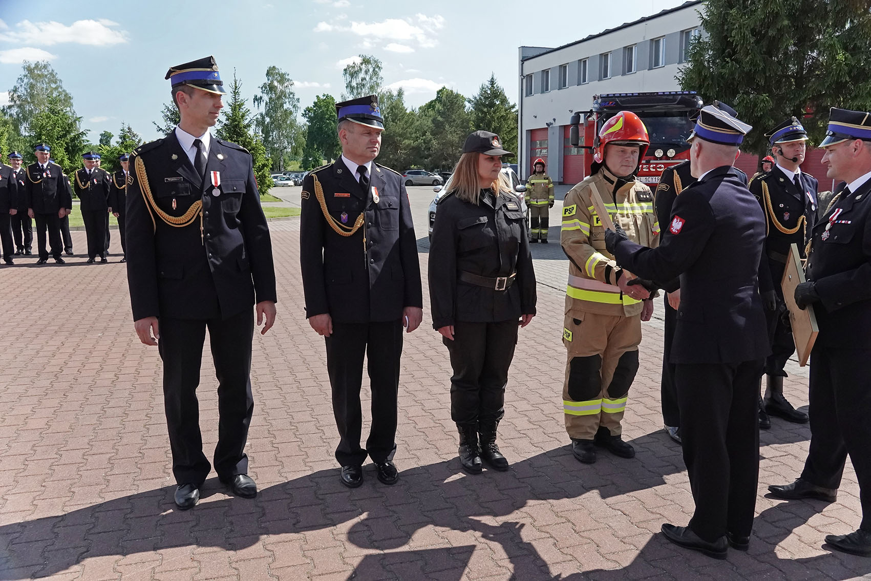 Z tej okazji 3 czerwca odbył się w tutejszej komendzie uroczysty apel, podczas którego wręczono strażakom medale i odznaczenia oraz awanse na wyższe stopnie służbowe.