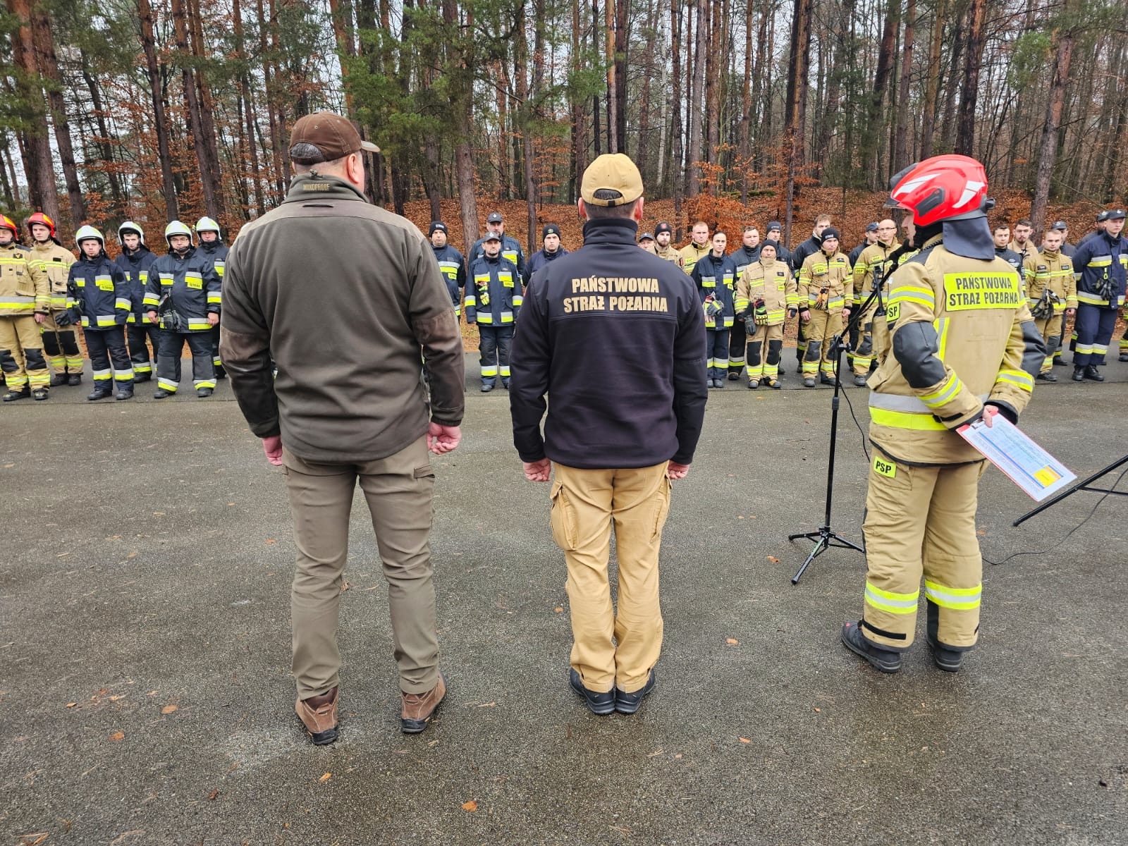 Komenda Powiatowa PSP w Lubaczowie składa serdeczne podziękowania Nadleśniczemu Nadleśnictwa Oleszyce za udostępnienie obszaru leśnego oraz pomoc w organizacji ćwiczeń. Wyrazy uznania kierujemy również do wszystkich jednostek Ochotniczych Straży Pożarnych, które z pełnym zaangażowaniem uczestniczyły w przedsięwzięciu, a także do funkcjonariuszy Policji, którzy dbali o bezpieczeństwo i właściwe zabezpieczenie ćwiczeń.