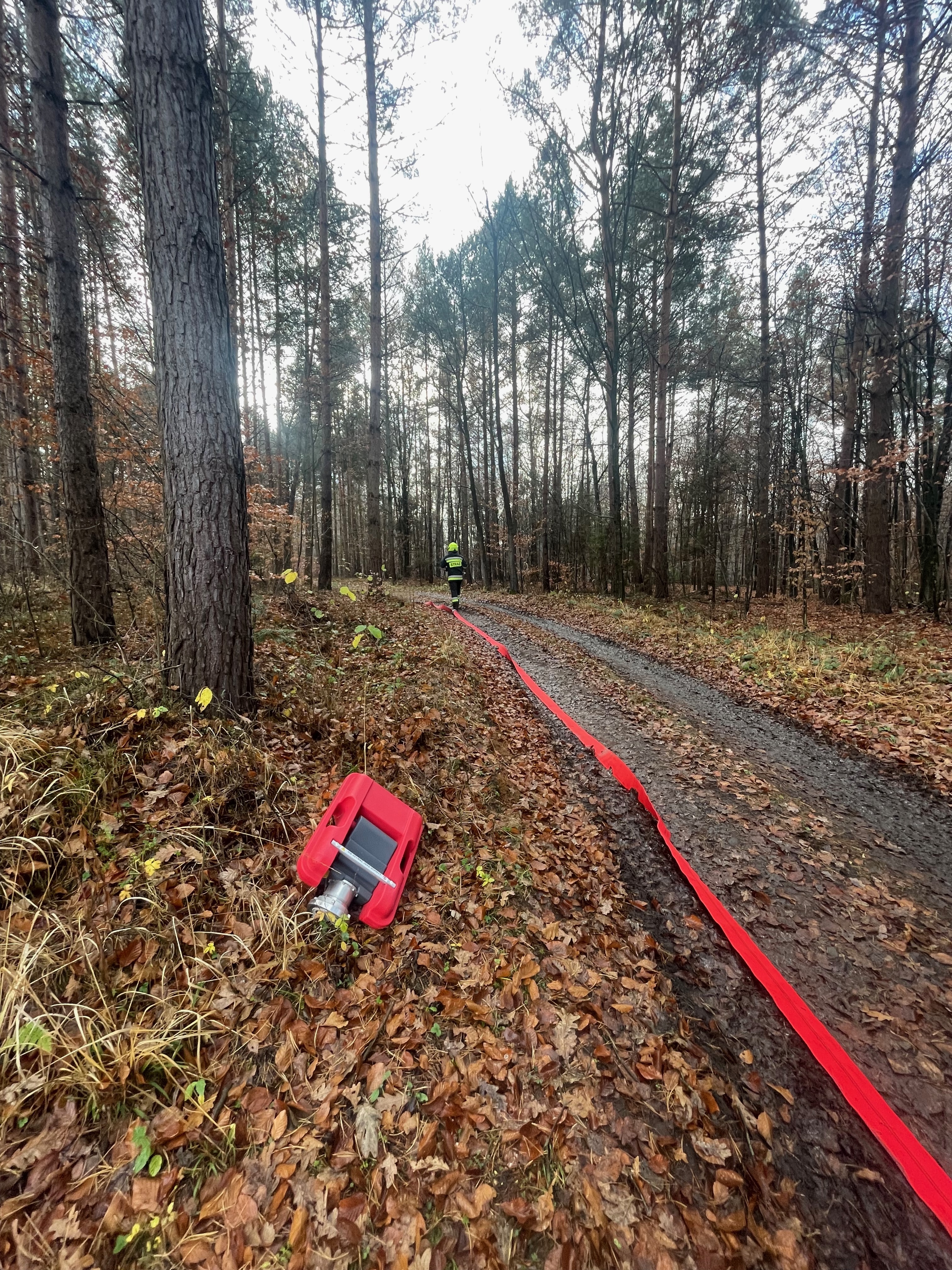 Tym razem ćwiczenia zostały przeprowadzone na terenie Nadleśnictwa Oleszyce, w leśnictwie Czerniakowa Buda. Warunki terenowe pozwoliły na praktyczne sprawdzenie wydajności długich linii zaopatrzenia wodnego, organizacji punktów czerpania wody oraz koordynacji współpracy między zastępami.