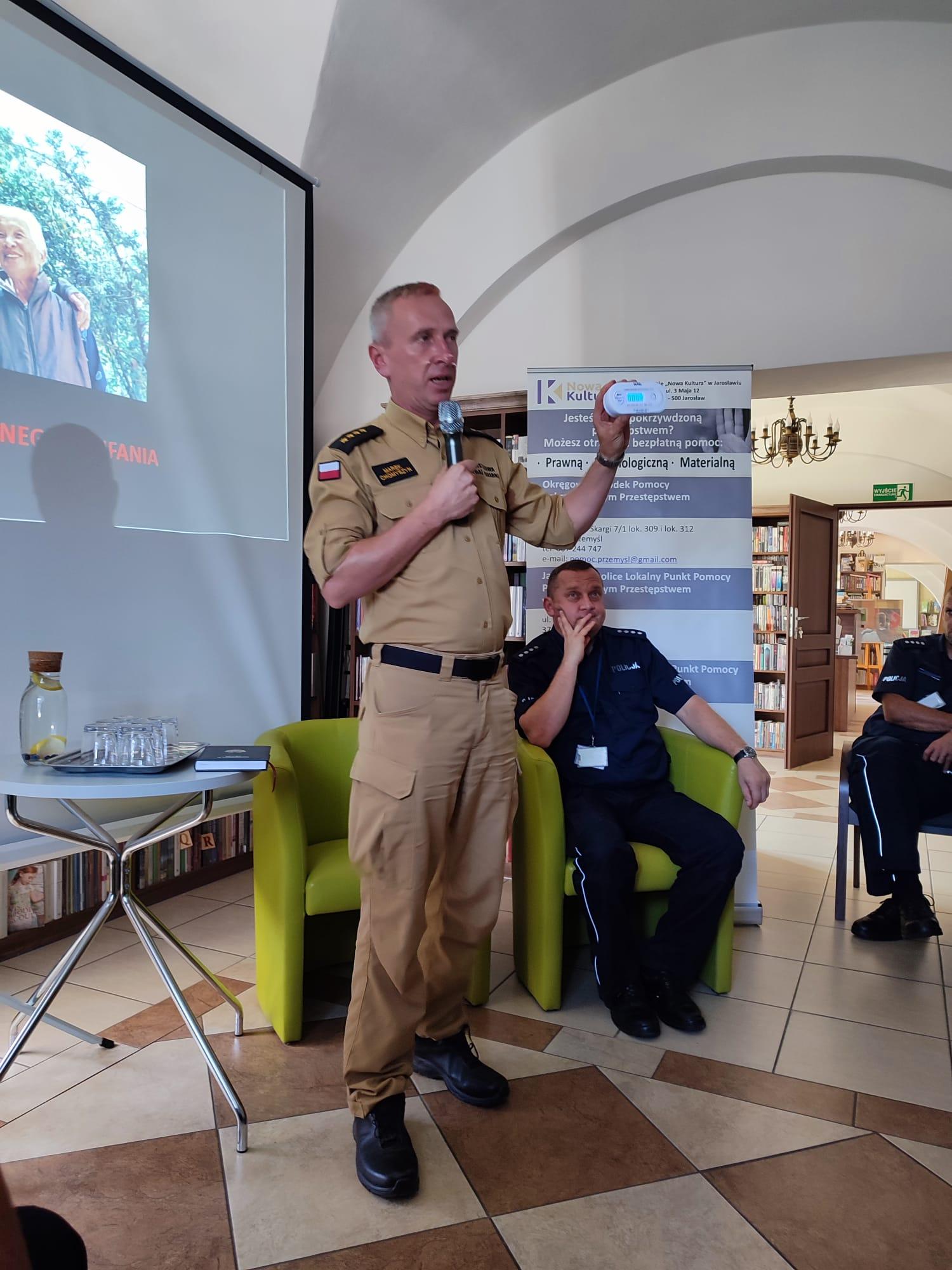 W środę 28 sierpnia w miejsko-gminnej bibliotece publicznej w Oleszycach odbyła się debata społeczna pn. „Bezpieczny Senior – metody i sposoby oszustów wyłudzających pieniądze” zorganizowaną przez Komendę Powiatową Policji w Lubaczowie. Wśród zaproszonych gości był Dowódca Jednostki Ratowniczo Gaśniczej st. kpt. Marek Chomyszyn, który przeprowadził prelekcję nt. zagrożeń w sezonie zimowego ogrzewania mieszkań w budynkach jedno i wielorodzinnych, a przede wszystkim omówił zagrożenia jakie niesie „cichy zabójca”, którym jest tlenek węgla potocznie nazywany czadem. W trakcie swojego wystąpienia nawiązał do Ogólnopolskiej Kampanii „CZUJKA NA STRAŻY TWOJEGO BEZPIECZEŃSTWA” zachęcając seniorów do zamontowania w domu czujnika tlenku węgla oraz dymu.