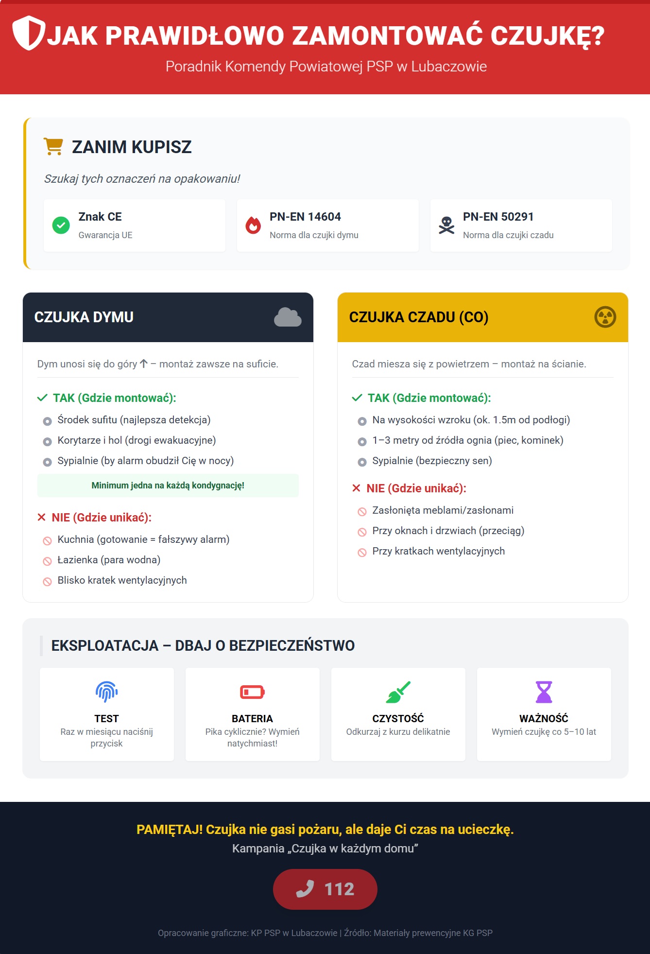 Mimo to apelujemy: czujkę warto zainstalować już dziś – jej koszt to kilkadziesiąt złotych, a wartość w sytuacji zagrożenia jest bezcenna.