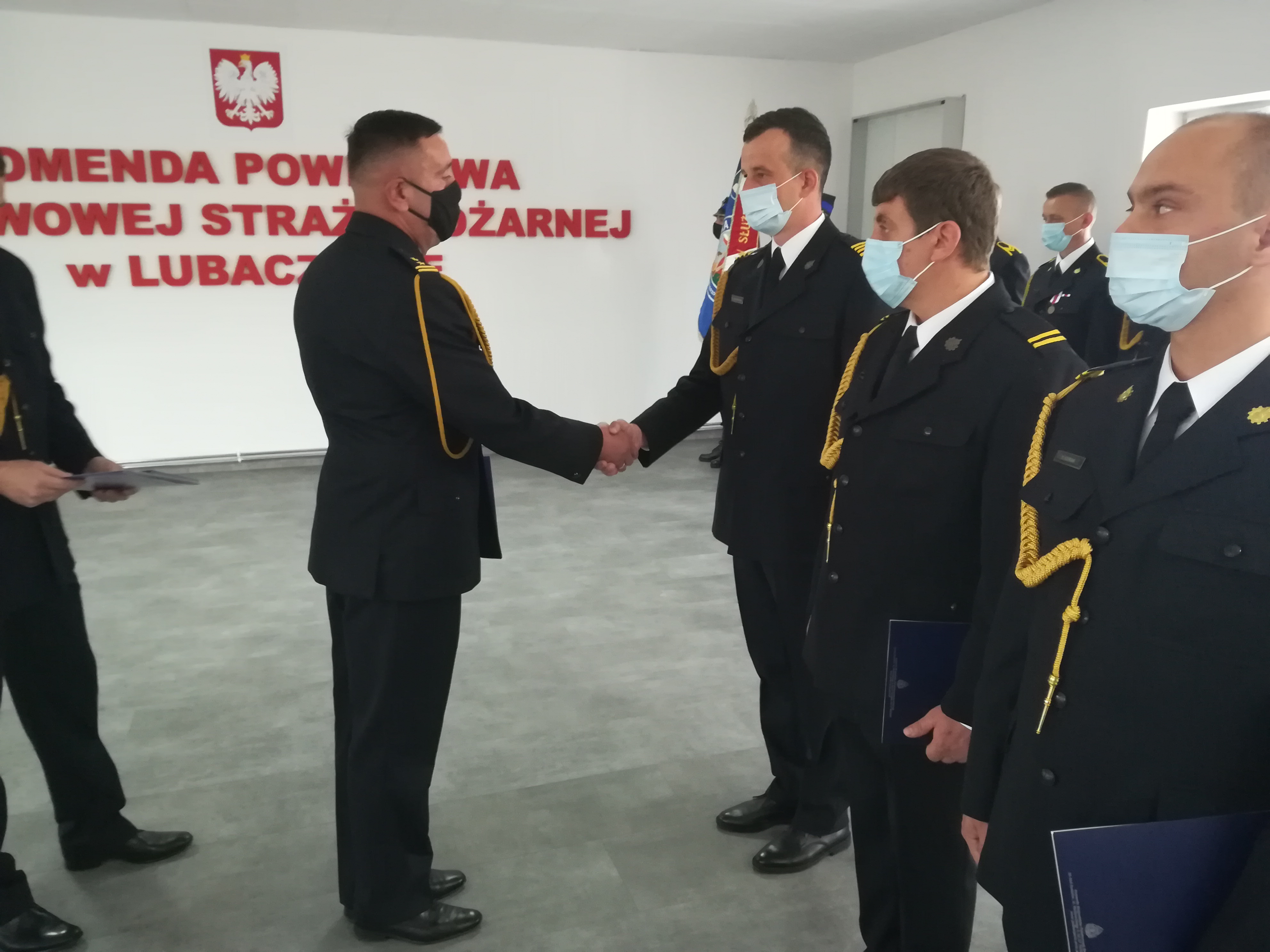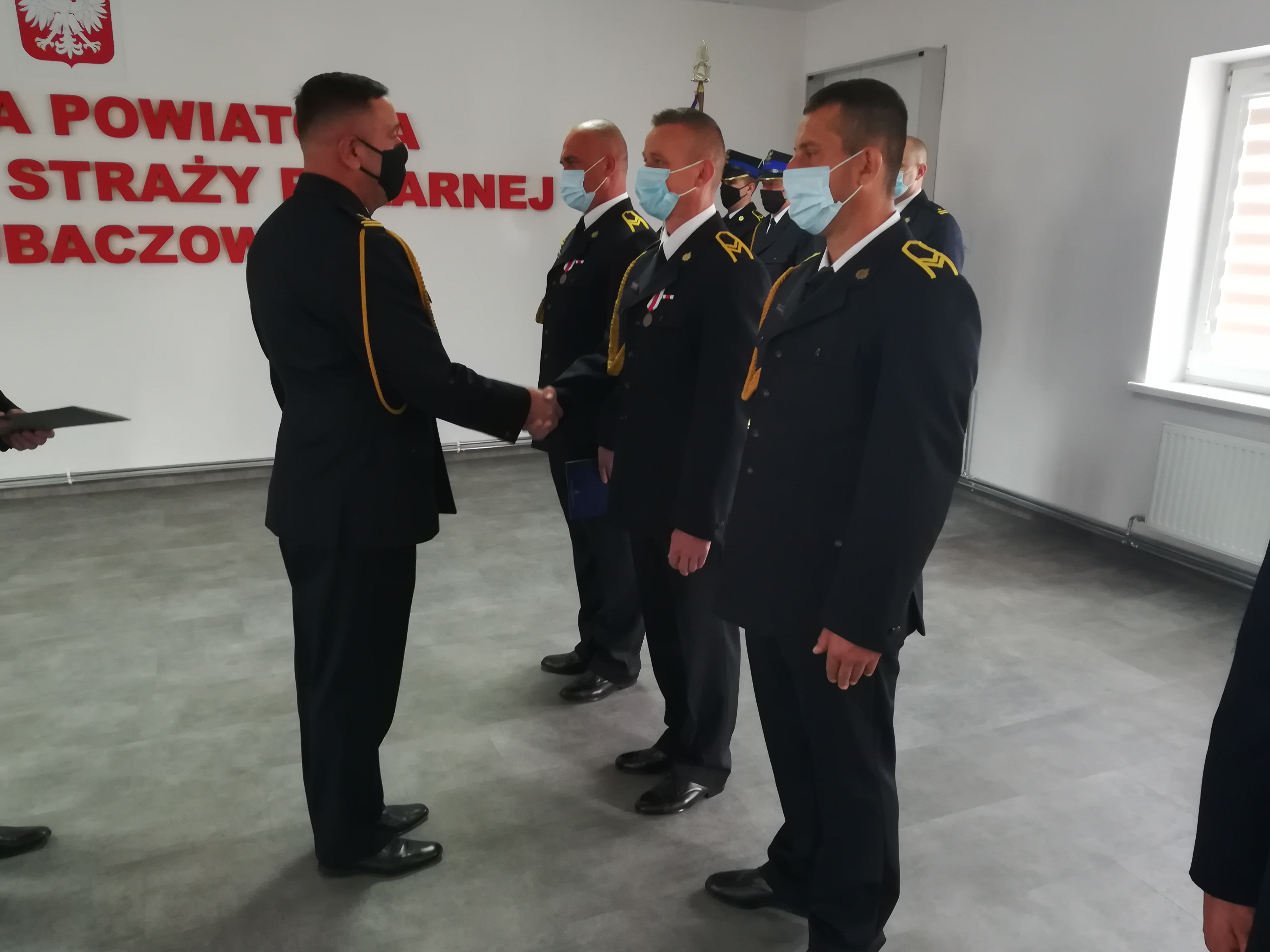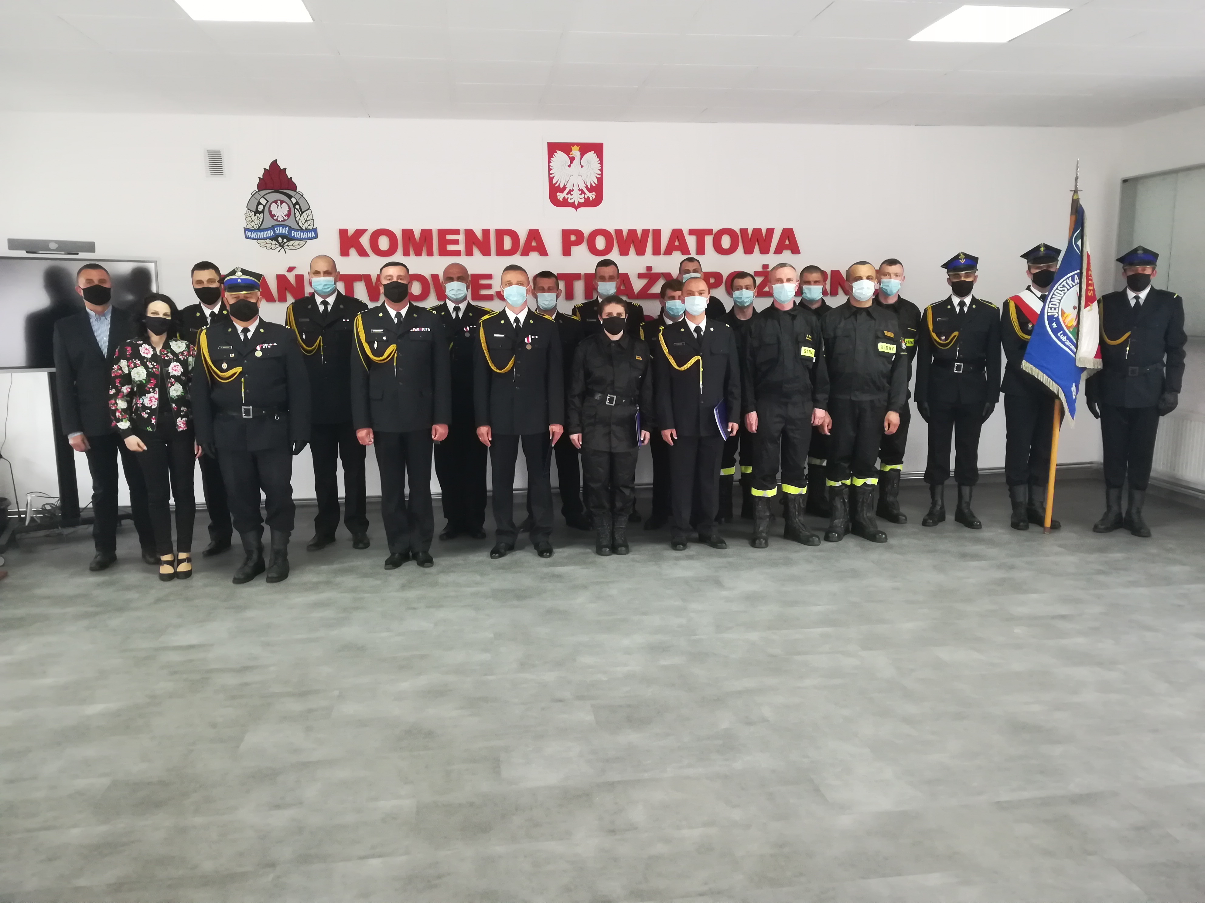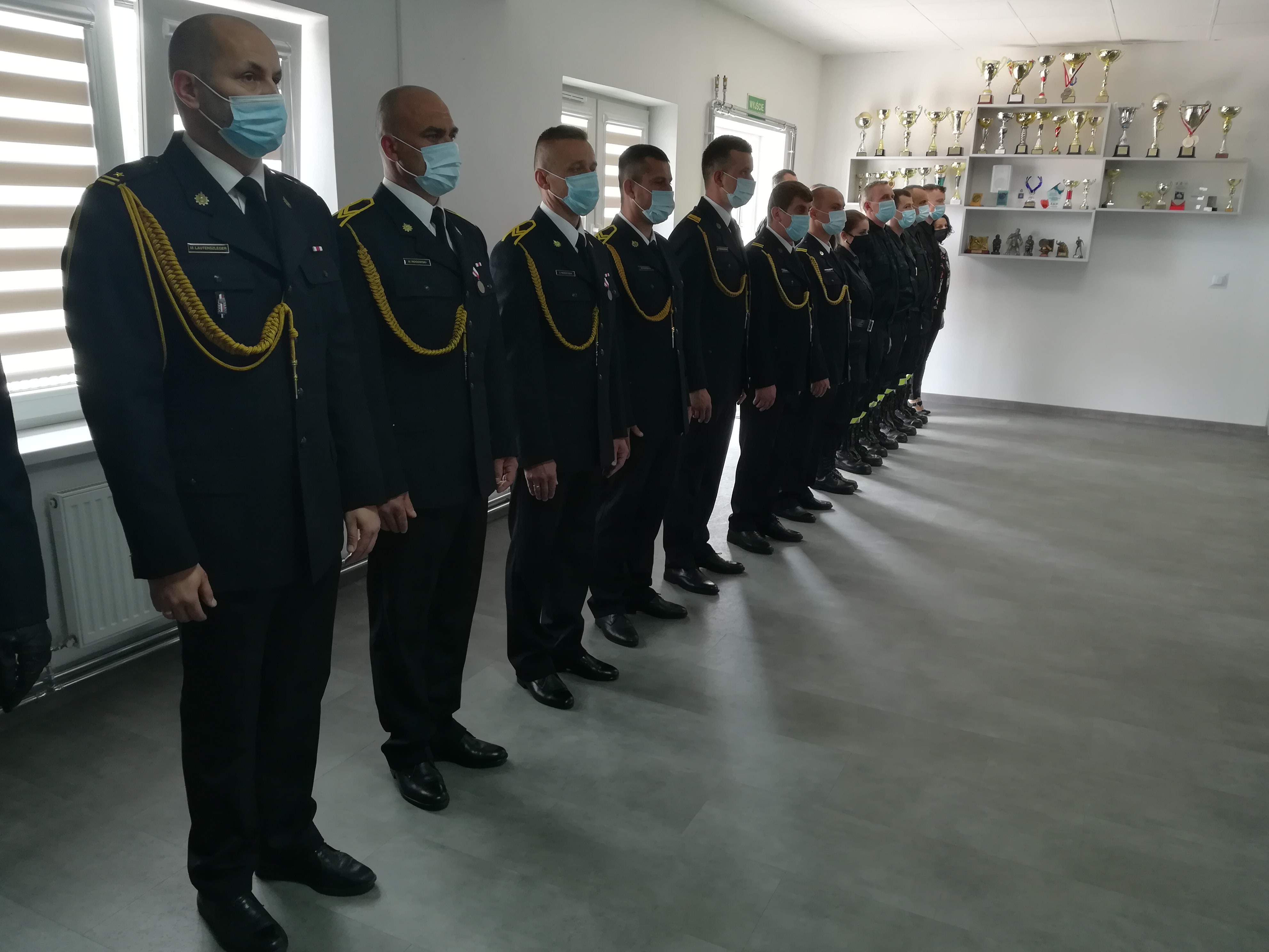 Ze względu na aktualną sytuację epidemiczną oraz wynikającymi z niej obostrzeniami i ograniczeniami, w tegorocznych obchodach Dnia Strażaka brali udział tylko funkcjonariusze, pracownicy będący tego dnia w służbie i w pracy oraz awansowani strażacy z zachowaniem zasad reżimu sanitarnego.