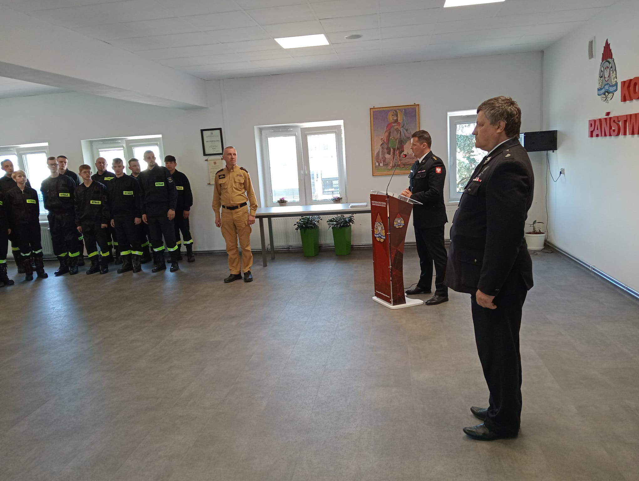 Uroczystego wręczenia zaświadczeń potwierdzających ukończenie szkolenia dokonał Komendant Powiatowy PSP w Lubaczowie st. kpt. Piotr Szpytma wraz z Prezesem Zarządu Oddziału Powiatowego ZOSP RP dh. Leszkiem Królem oraz Dowódcą Jednostki Ratowniczo Gaśniczej st. kpt. Markiem Chomyszynem.