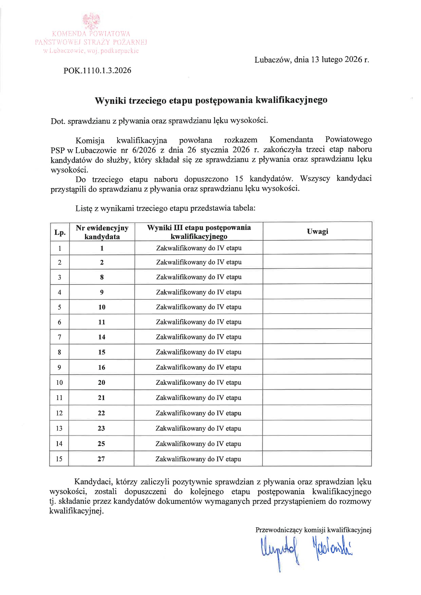 | Wyniki III etapu postępowania kwalifikacyjnego | 1.0 | 13.02.2026 14:23 Damian Stachów |