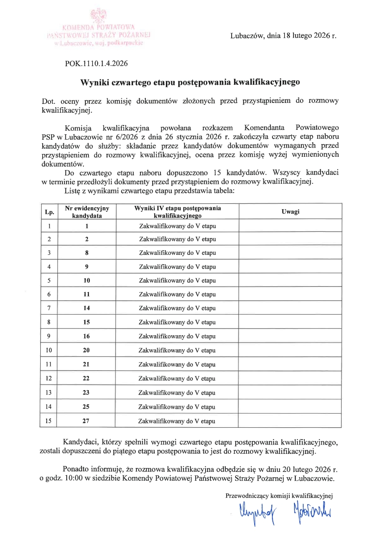 Wyniki IV etapu postępowania kwalifikacyjnego
