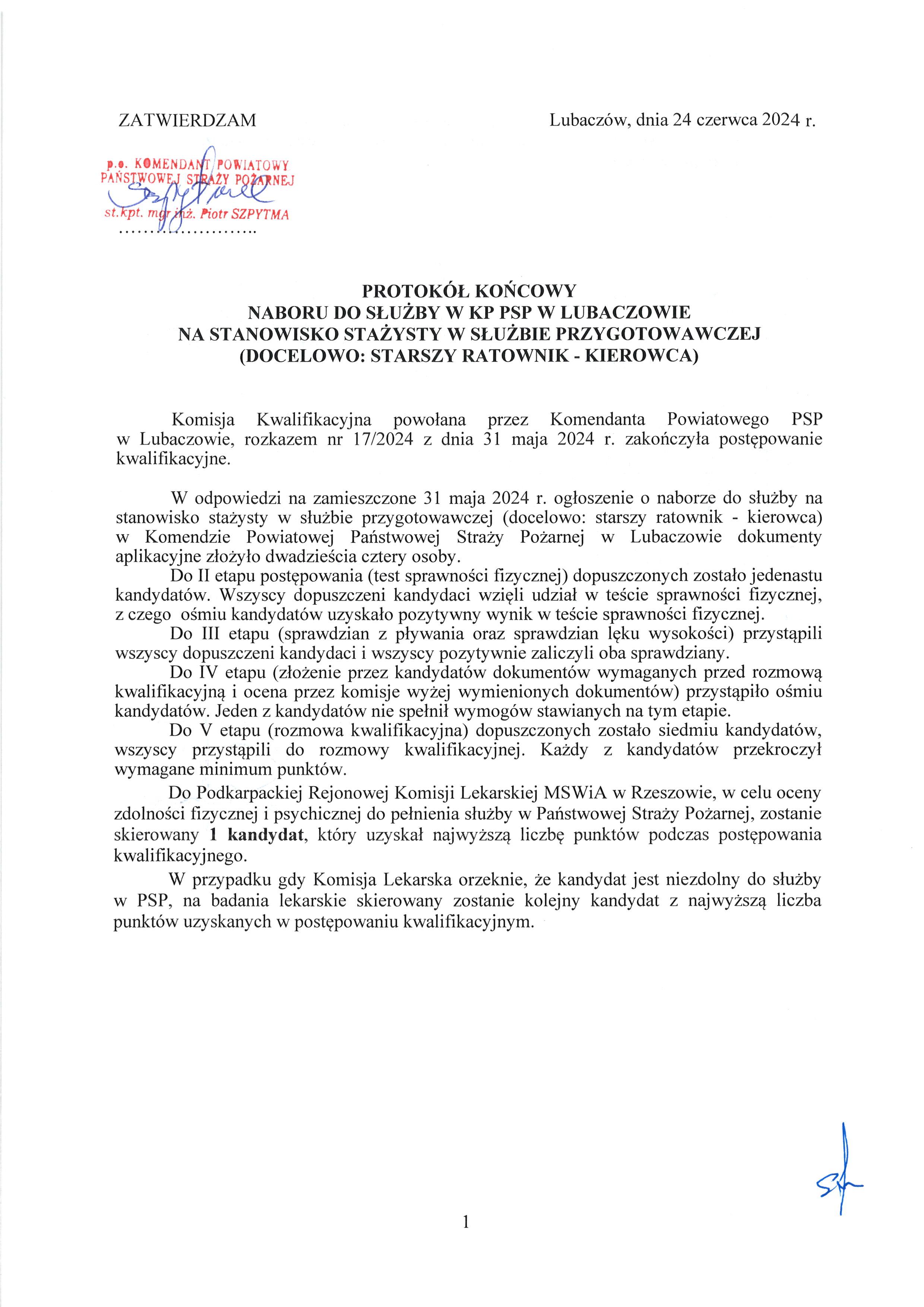 | Wyniki końcowe postępowania kwalifikacyjnego | 1.0 | 24.06.2024 15:28 Damian Stachów |