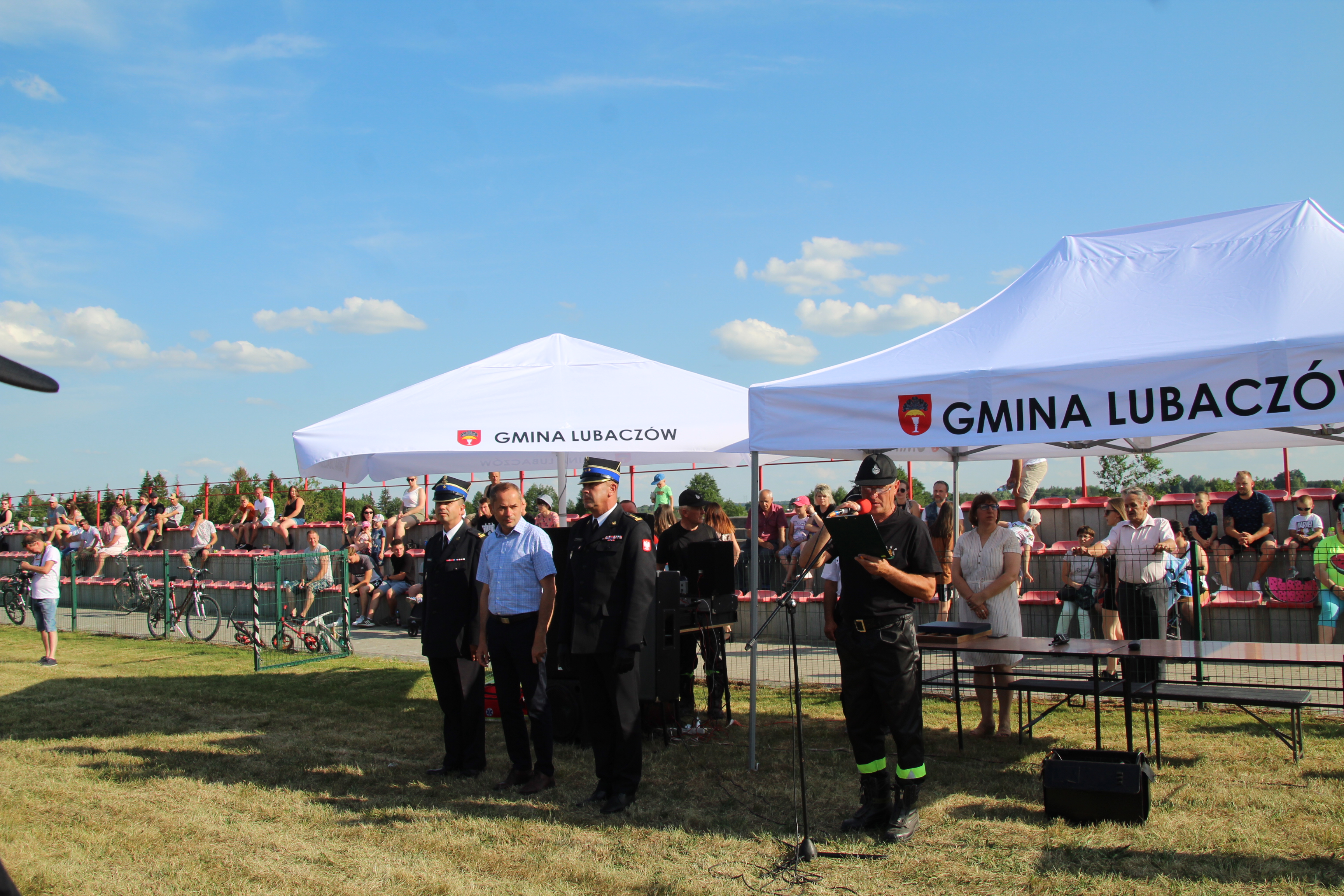Rywalizacje sportowe poprzedził przemarsz strażaków na teren stadionu, a następnie złożenie meldunku o gotowości do zawodów st.bryg. Januszowi Jabłońskiemi - p.o. zastępcy podkarpackiego komendanta wojewódzkiego PSP. W trakcie przywitania pan Wiesław Kapel - wójt gminy Lubaczów złożył gratulacje st.bryg. Januszowi Jabłońskiemu w związku z powołaniem na nowe stanowisko służbowe oraz podziękował za dotychczasową współpracę.