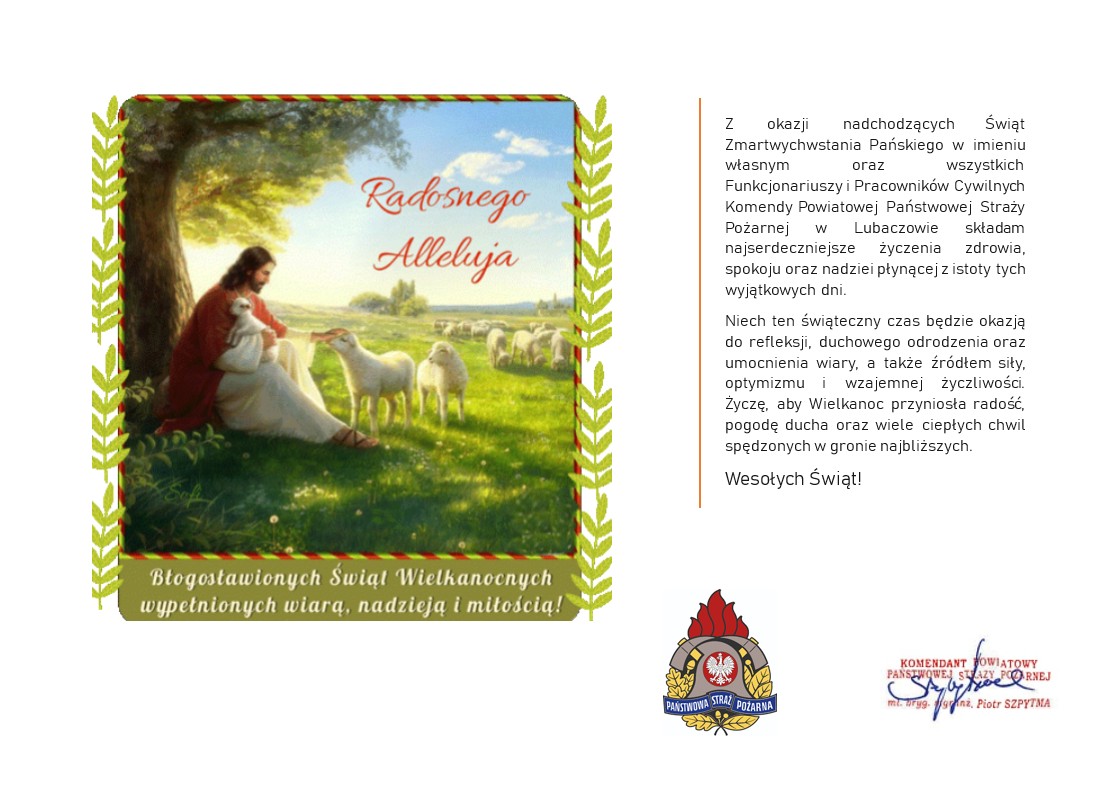 Życzenia Komendanta Powiatowego PSP w Lubaczowie z okazji świąt Wielkanocnych