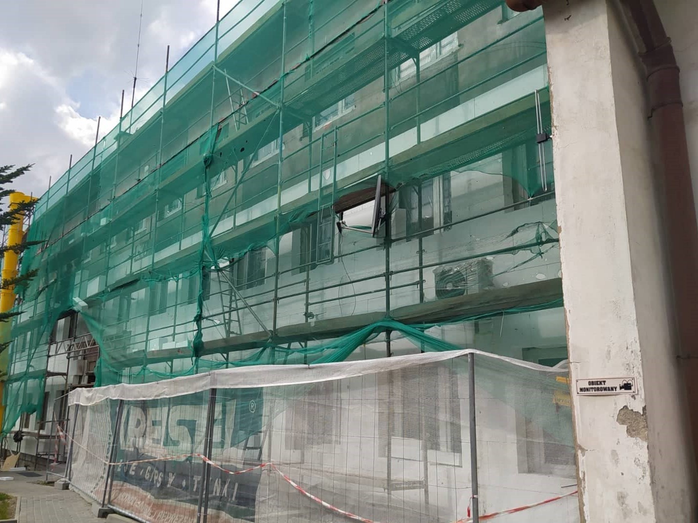 Aktualnie trwają prace budowlane związane z realizacją zadania inwestycyjnego - termomodernizacja i modernizacja budynku Komendy Powiatowej Państwowej Straży Pożarnej w Lubaniu.