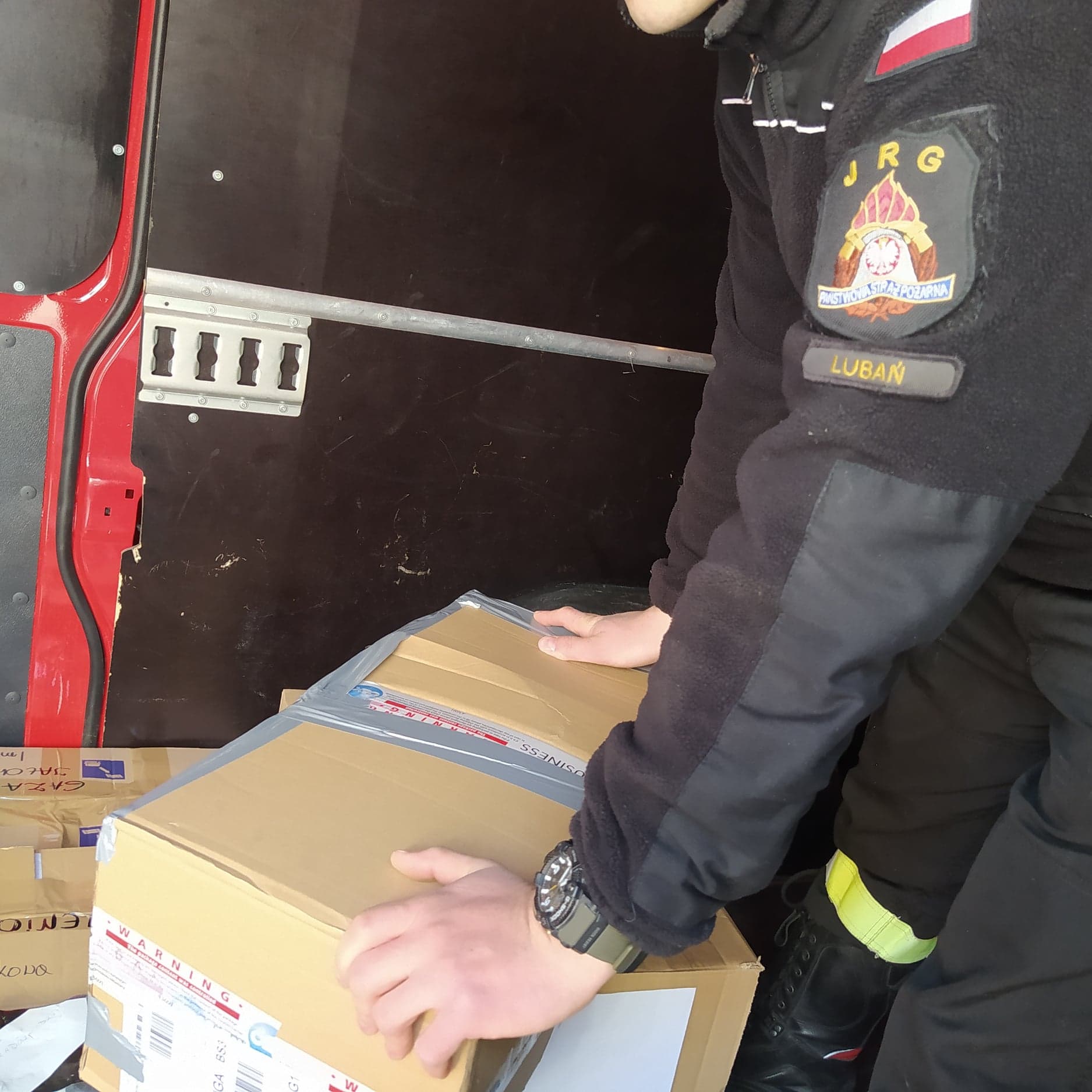 W ostatnim tygodniu strażacy ochotniczych straży pożarnych powiatu lubańskiego i strażacy Jednostki Ratowniczo Gaśniczej w Lubaniu zorganizowali zbiórkę materiałów służących do udzielania pomocy medycznej osobom poszkodowanym. Zbiórka miała na celu pomoc ukraińskim strażakom ratownikom, którzy pełnią służbę w warunkach wojennych. Zdarza się niejednokrotnie, że udzielając pomocy są pod ostrzałem i poświęcają swoje życie. Na jednym ze zdjęć widoczna szyba w samochodzie pożarniczym na lotnisku Hostomel.