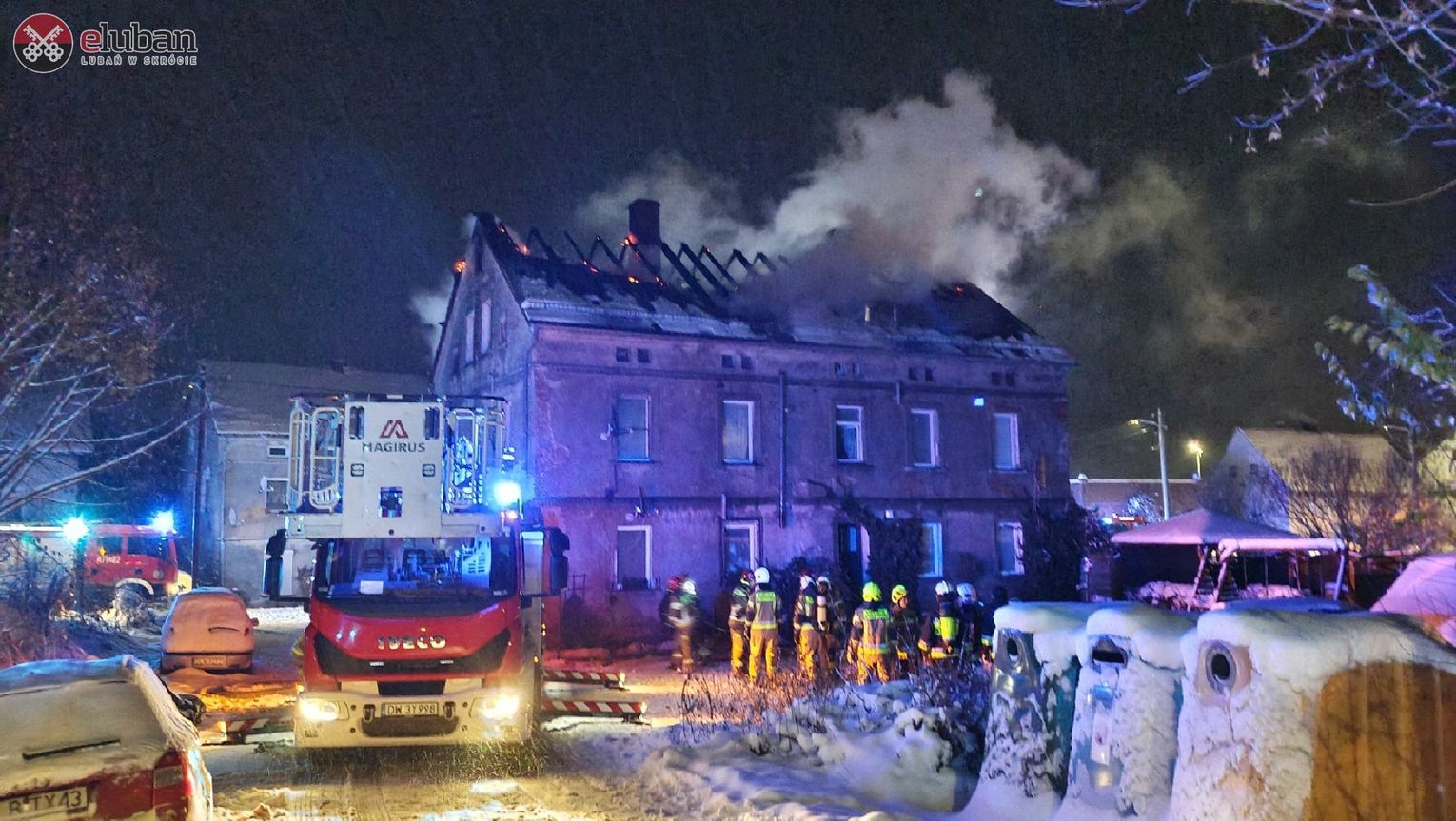Informacja o pożarze dotarła do Stanowiska Kierowania Komendanta Powiatowego PSP w Lubaniu po godzinie 2:20 w nocy. Ze zgłoszenia wynikało, że pali się dach w budynku wielorodzinnym. W budynku tym zamieszkiwało 16 osób w 7 lokalach mieszkalnych. Strażacy po przybyciu na miejsce pożaru zastali znacznie rozwinięty pożar dachu – płomienie były widoczne na zewnątrz budynku. Trzeba wspomnieć, że przed przyjazdem strażaków patrol policji przeprowadził skutecznie ewakuację osób z budynku. Działania straży pożarnej to przede wszystkim ostateczne sprawdzenie, czy w budynku nie było osób zagrożonych, a następnie ugaszenie pożaru. Działania prowadzono wewnątrz budynku, gdzie roty (dwuosobowe zespoły strażaków ratowników) zabezpieczone w aparaty powietrzne, podawały prądy wody na poddasze, strych i część dachową, a także z zewnątrz budynku, gdzie z drabiny mechanicznej i podnośnika podano prąd wody w celu zdmuchnięcia płomienia na dachu i schłodzenia strefy pożaru. Dodatkowo odłączono zasilanie budynku w gaz i energię elektryczną. Szybko osiągnięto tzw. lokalizację zdarzenia, czyli moment od którego pożar już się nie rozwijał. Na miejsce zdarzenia wezwano także nadzór budowlany i zarządzanie kryzysowe. Działania trwały 5 godzin.