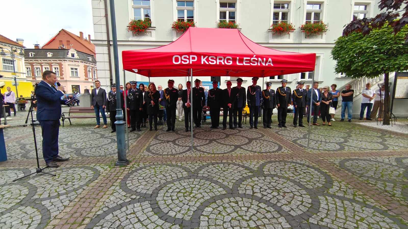 W uroczystości brał udział zastępca Komendanta Głównego PSP nadbryg. Adam Konieczny, przedstawiciele Komendy Powiatowej PSP w Lubaniu, strażacy Ochotniczej Straży Pożarnej z Leśnej, starosta Powiatu Lubańskiego Walery Czarnecki, samorządowcy Gminy Leśna wraz z burmistrzem Leśnej Szymonem Surmaczem, dyrektor Pogotowia Ratunkowego w Jeleniej Górze, przedstawiciele Policji. Na uroczystość przybyła licznie również społeczność Leśnej.