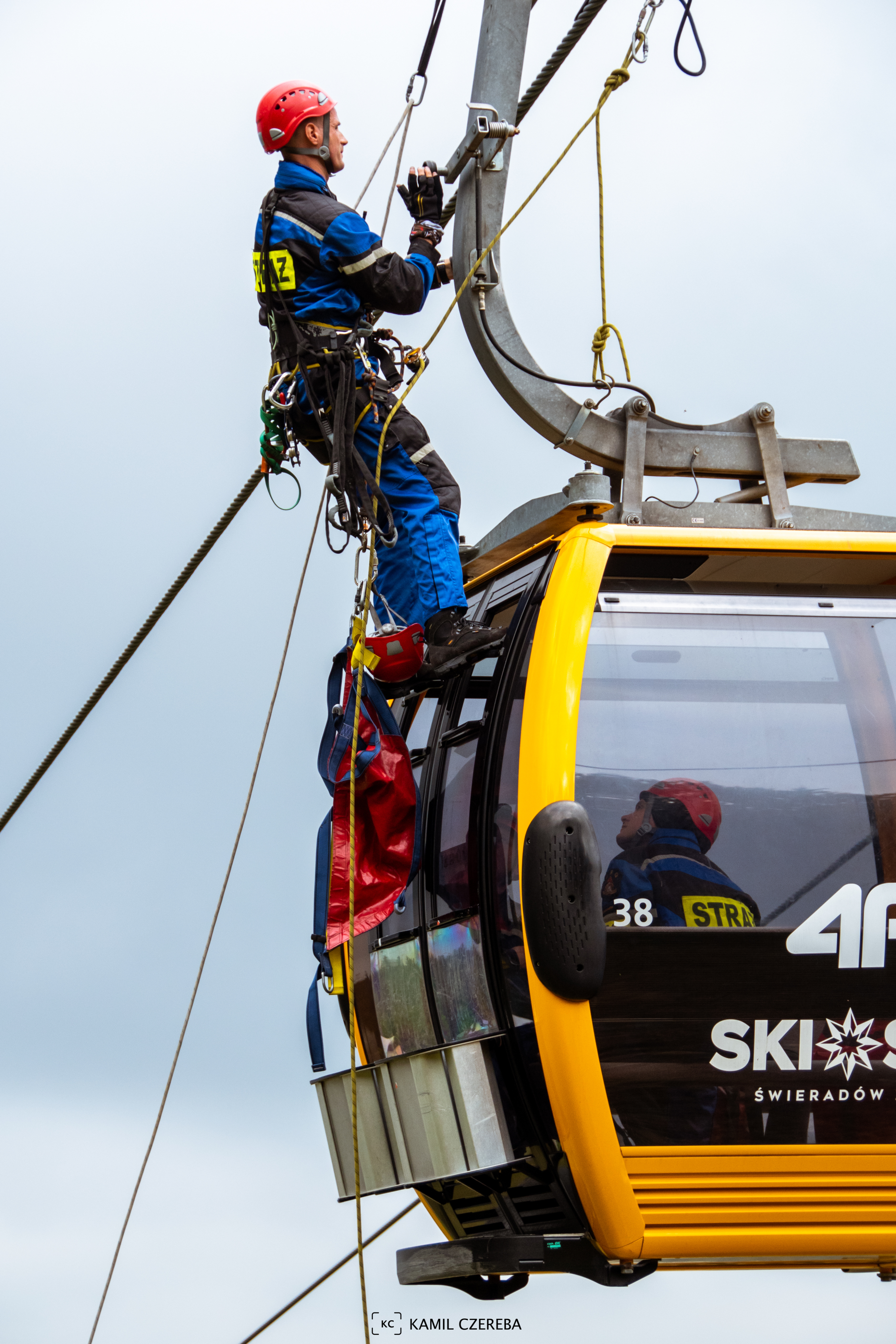 We wtorek - 28 września 2021 roku strażacy i druhowie OSP z terenu powiatu lubańskiego ćwiczyli na dolnej stacji kolei gondolowej w Świeradowie-Zdroju.