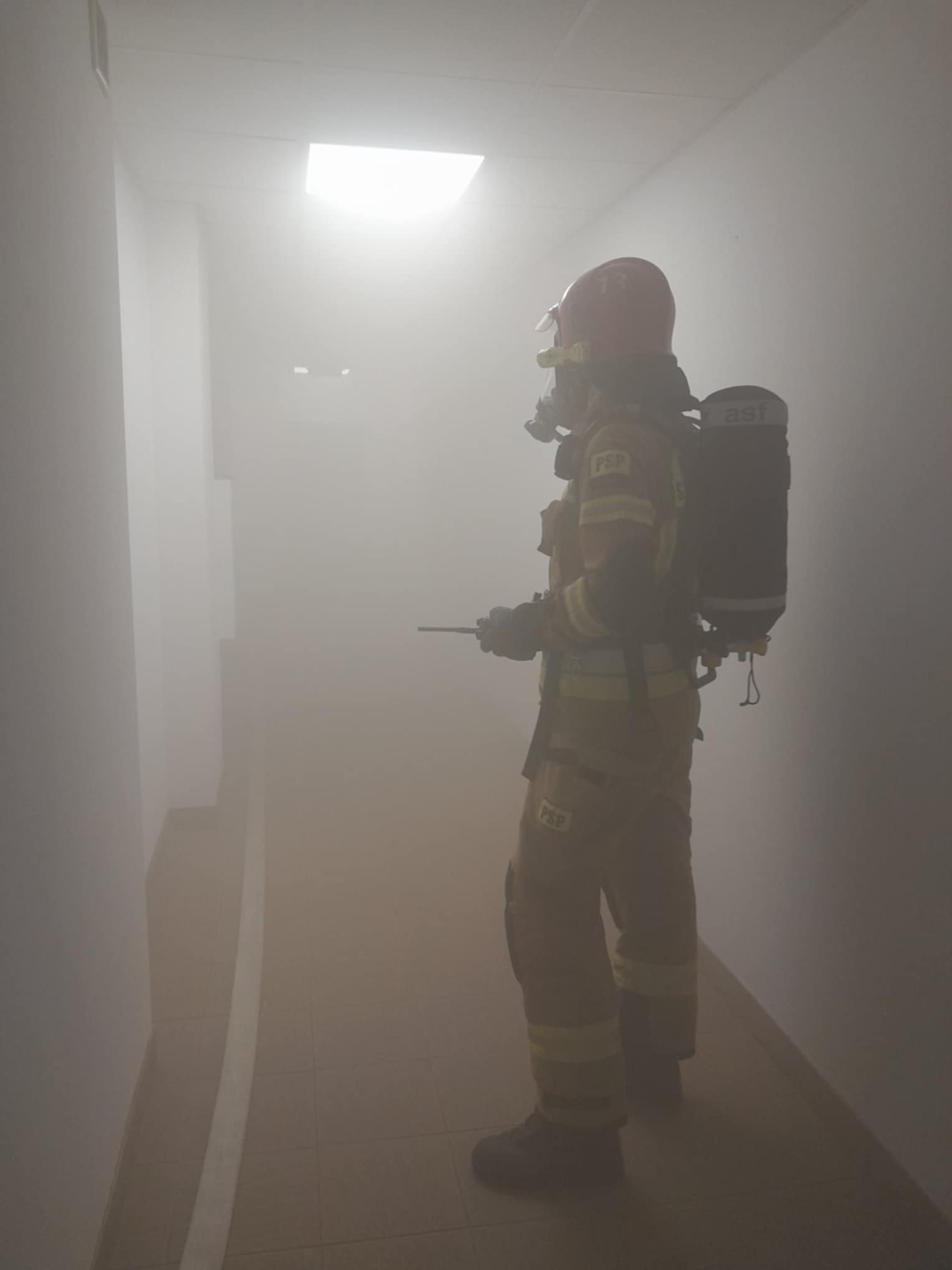 Pomieszczenia w stacji zadymiono dymem ćwiczebnym. Do pożaru zadysponowano zastępy z JRG Lubań i kilku ochotniczych straży pożarnych pow. lubańskiego. Ćwiczący zabezpieczyli teren akcji, rozwijali linie wężowe. W tym samym czasie przeprowadzili sprawdzenie wszystkich zwłaszcza zadymionych pomieszczeń i faktycznie odnaleziono dwie osoby. Jedna z nich była na tyle poszkodowana, że nastąpiła potrzeba ewakuacji na noszach. W trakcie epizodu stosowano także drobne podgrywki. Postawiono przed strażakami zadanie ewakuacji innego strażaka, który doznał urazu w wyniku akcji. Swoje możliwości podczas tego epizodu pokazała nieformalna grupa RIT (Rapid Intervertion Team - Zespół Szybkiej Interwencji) działająca w OSP Leśna.