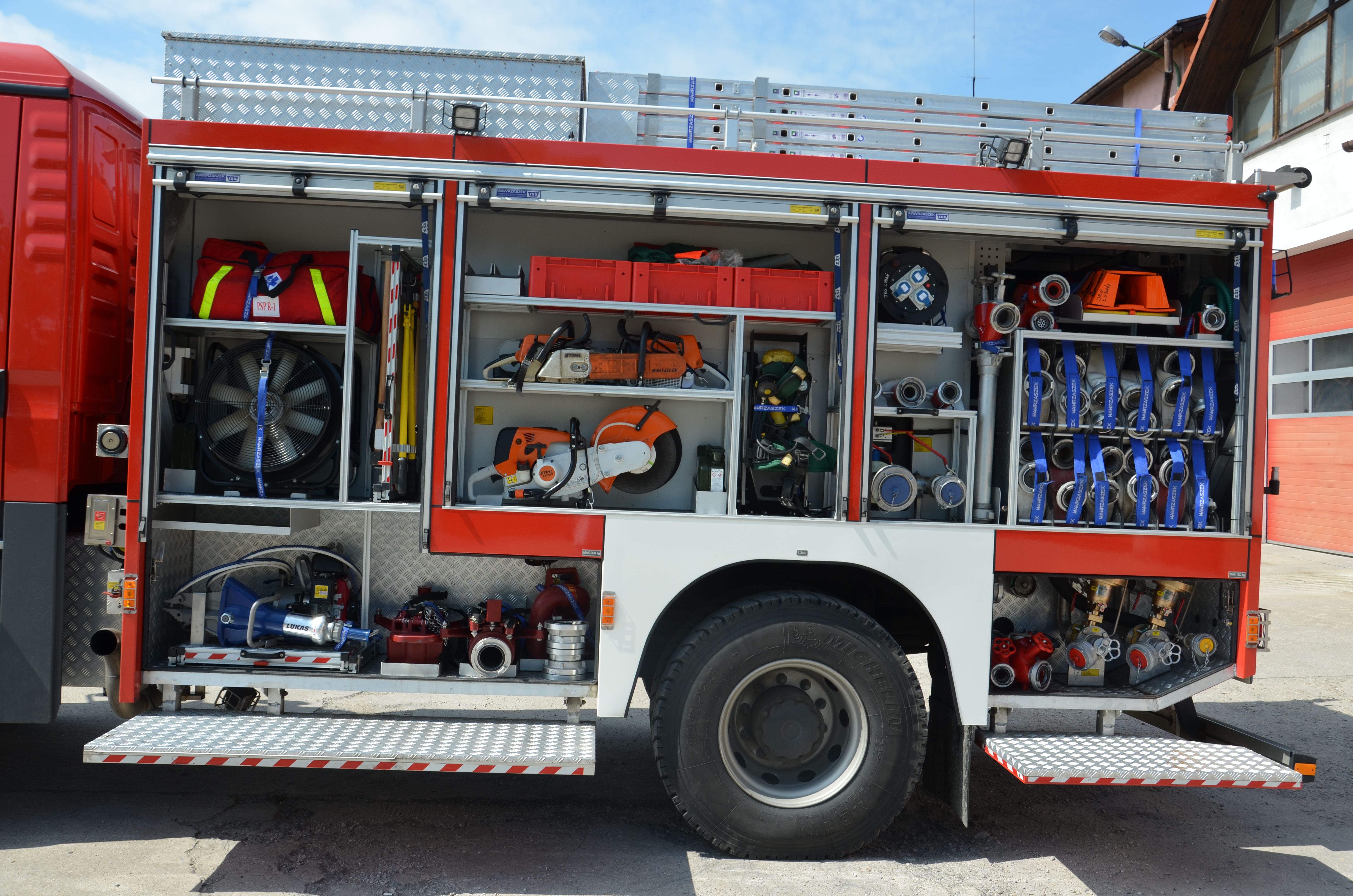 Samochód ciężki ratowniczo-gaśniczy wyprodukowany w 2012 roku. Na pojeździe znajduje się zbiornik o pojemności 5000 litrów wody oraz zbiornik środka pianotwórczego o pojemności 500 litrów. Pojazd wyposażony w autopmpę o wydajności 4000 litrów/min. Samochód wyposażony jest w agregat prądotwórczy, pilarki spalinowe tarczowe i łańcuchowe, sprzęt hydrauliczny, drabinę przystawną 10 metrową, armaturę wodno-pianową, aparaty ochrony dróg oddechowych, ratowniczy sprzęt medyczny.