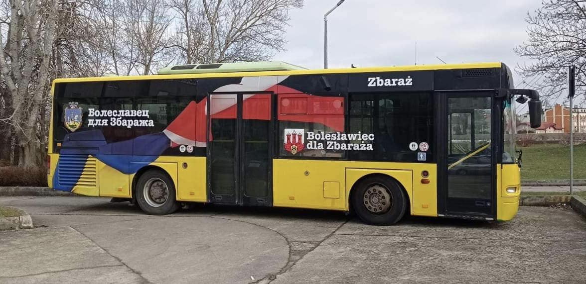 Na zdjęciu autobus, który Bolesławiec podarował Zbarażowi. W autobusie pojechały paczki z pomocą, jakie zorganizowały różne instytucje, stowarzyszenia, osoby prywatne i w dużej ilości strażacy z powiatu lubańskiego.