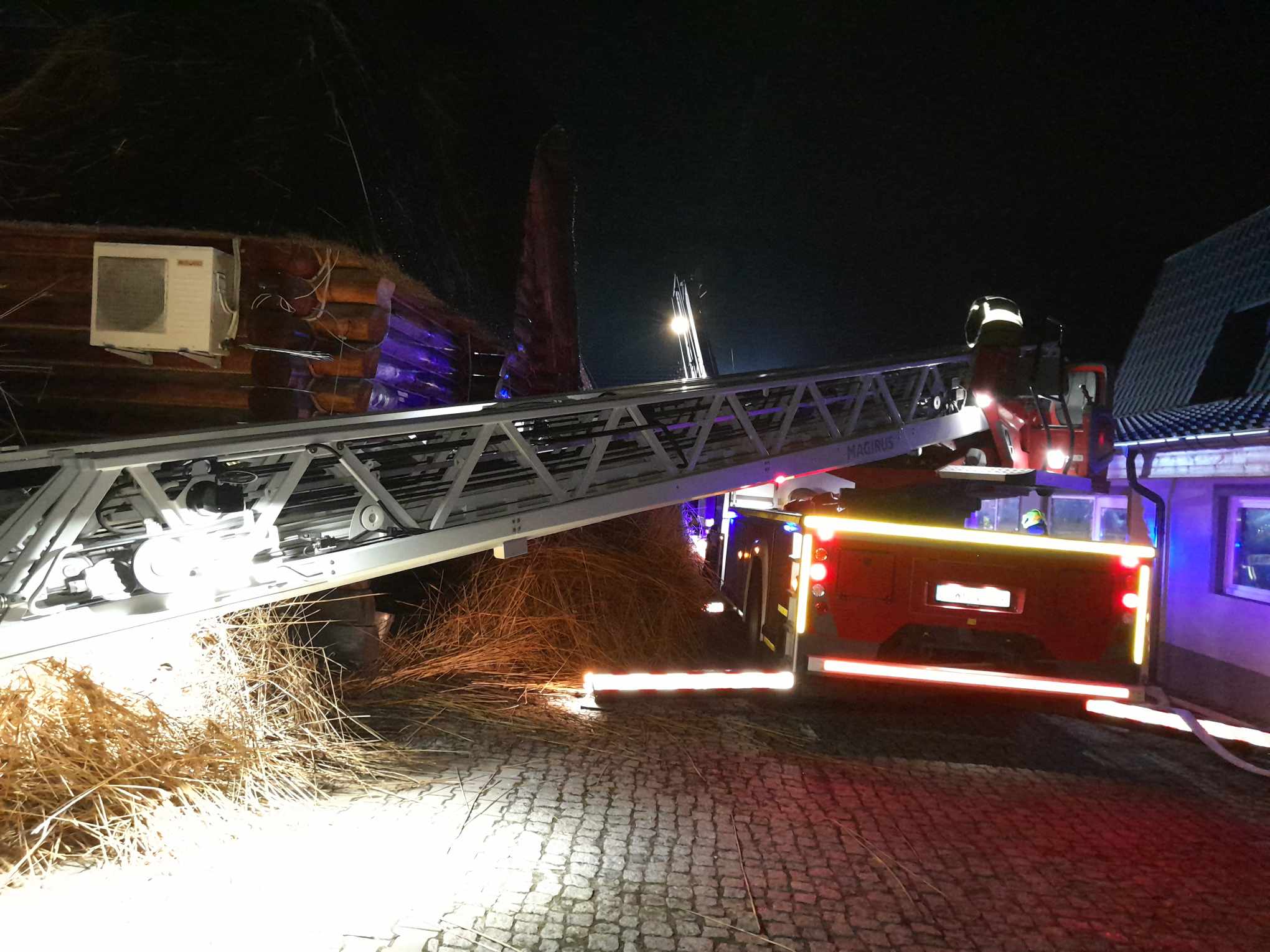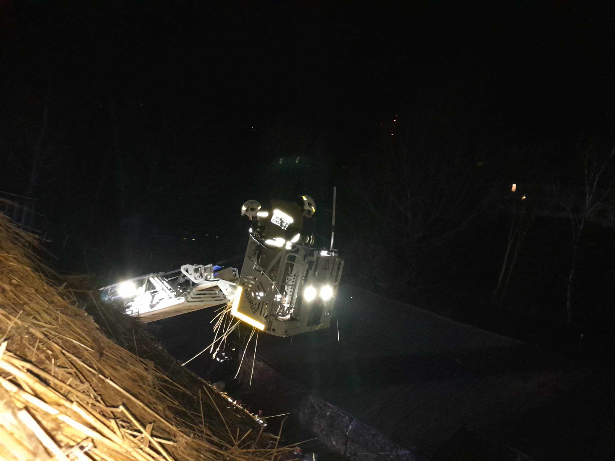 Pożary dachów krytych słomą lub trzciną nie są rzadkością. Problemem zazwyczaj jest tempo pożaru od momentu jego zaistnienia do podania pierwszego prądu wody. Także elementem utrudniającym działania gaśnicze jest gęstość ułożonej trzciny na dachu, jego nachylenie i impregnacja słomy przed oddziaływaniem wody.