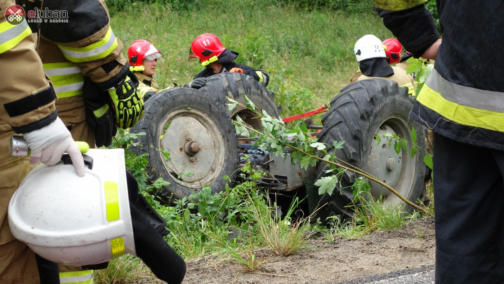Świadkowie, którzy zatrzymali się aby udzielić mu pomocy byli bezradni. Bez użycia specjalistycznego sprzętu nie byli w stanie wyciągnąć mężczyzny spod ciągnika. Dopiero przybyli na miejsce strażacy przy użyciu poduszek pneumatycznych i sprzętu hydraulicznego unieśli ciągnik i wydobyli mężczyznę. Niestety lekarz stwierdził zgon.