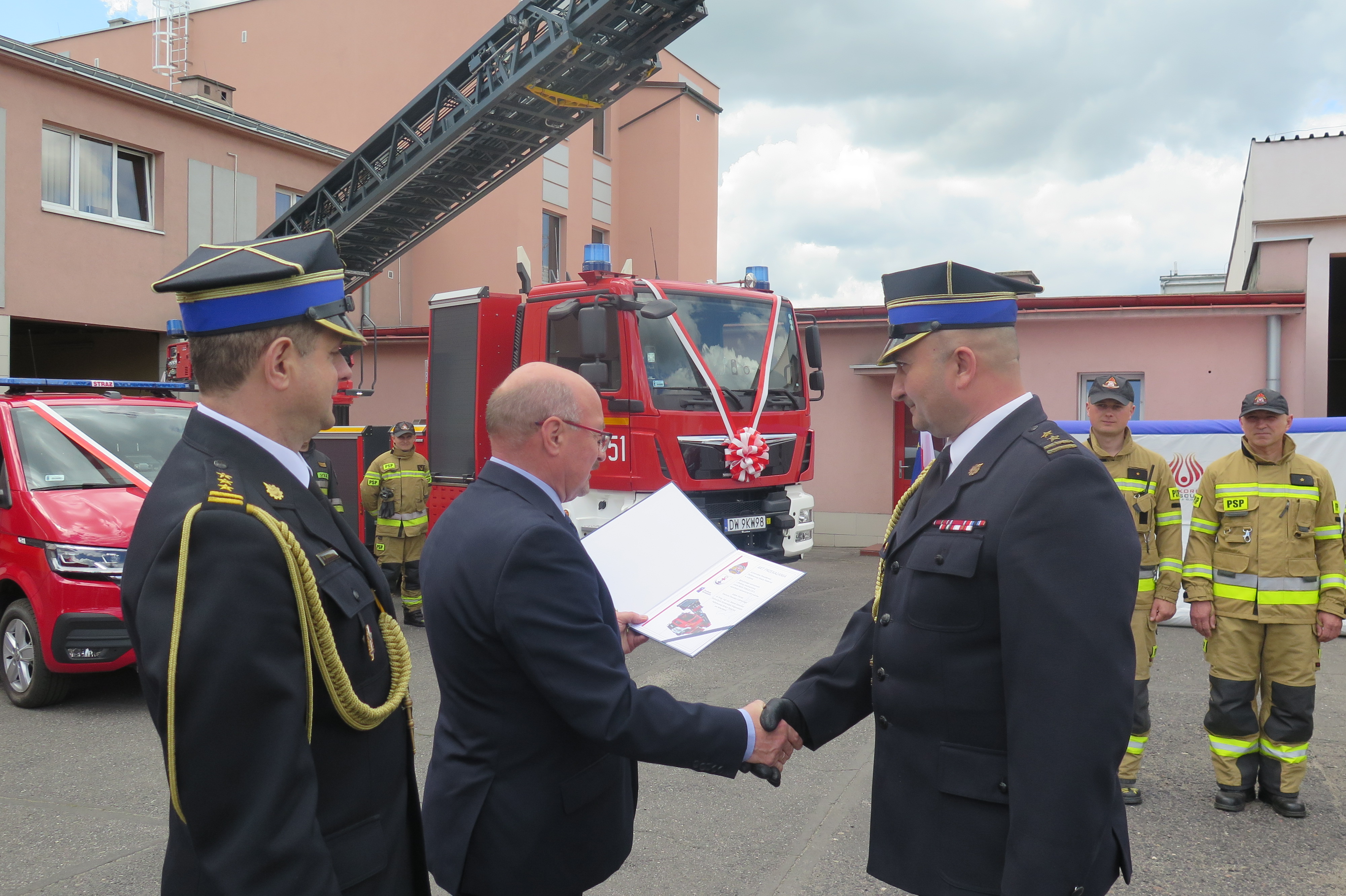 Podczas obchodów dokonano oficjalnego przekazania dwóch pojazdów specjalnych SCD 40 MAN TGM 18.320 ROSENBAUER z 40-metrową drabiną oraz SLKw VOLKSWAGEN TRANSPORTER. Zakup pojazdów możliwy był dzięki pozyskaniu dofinansowania m.in. z funduszy unijnych w ramach rządowych projektów oraz dotacji z gminy Lubin.