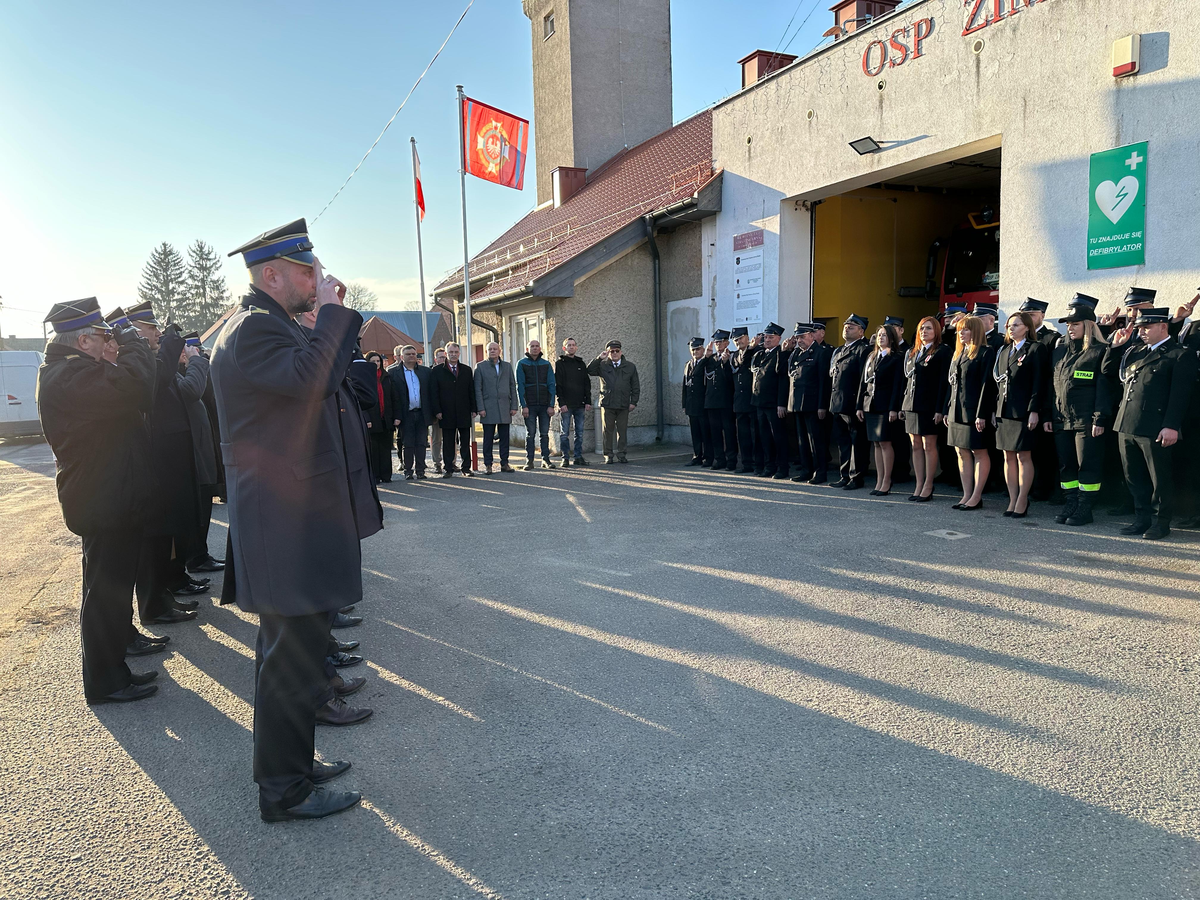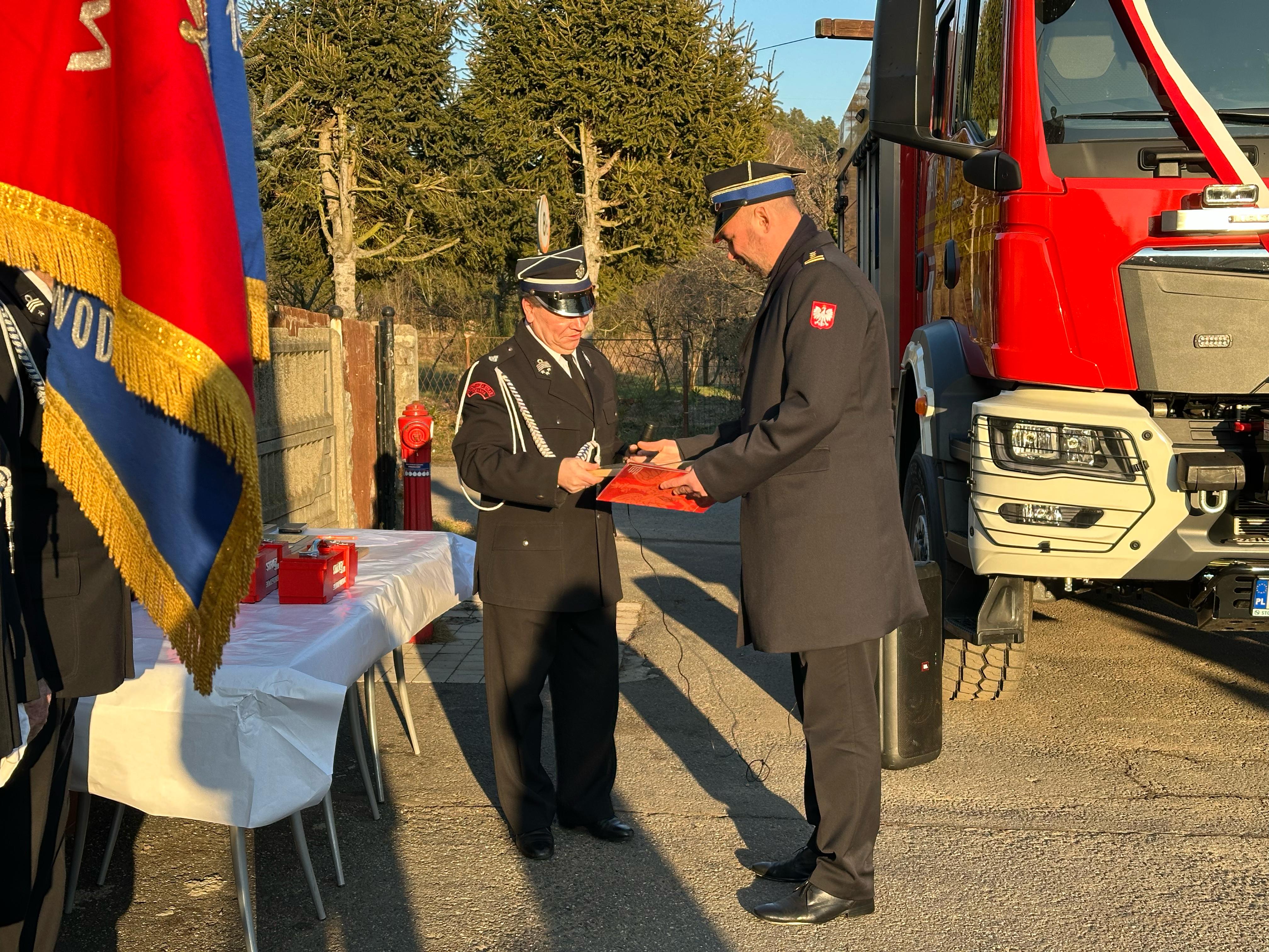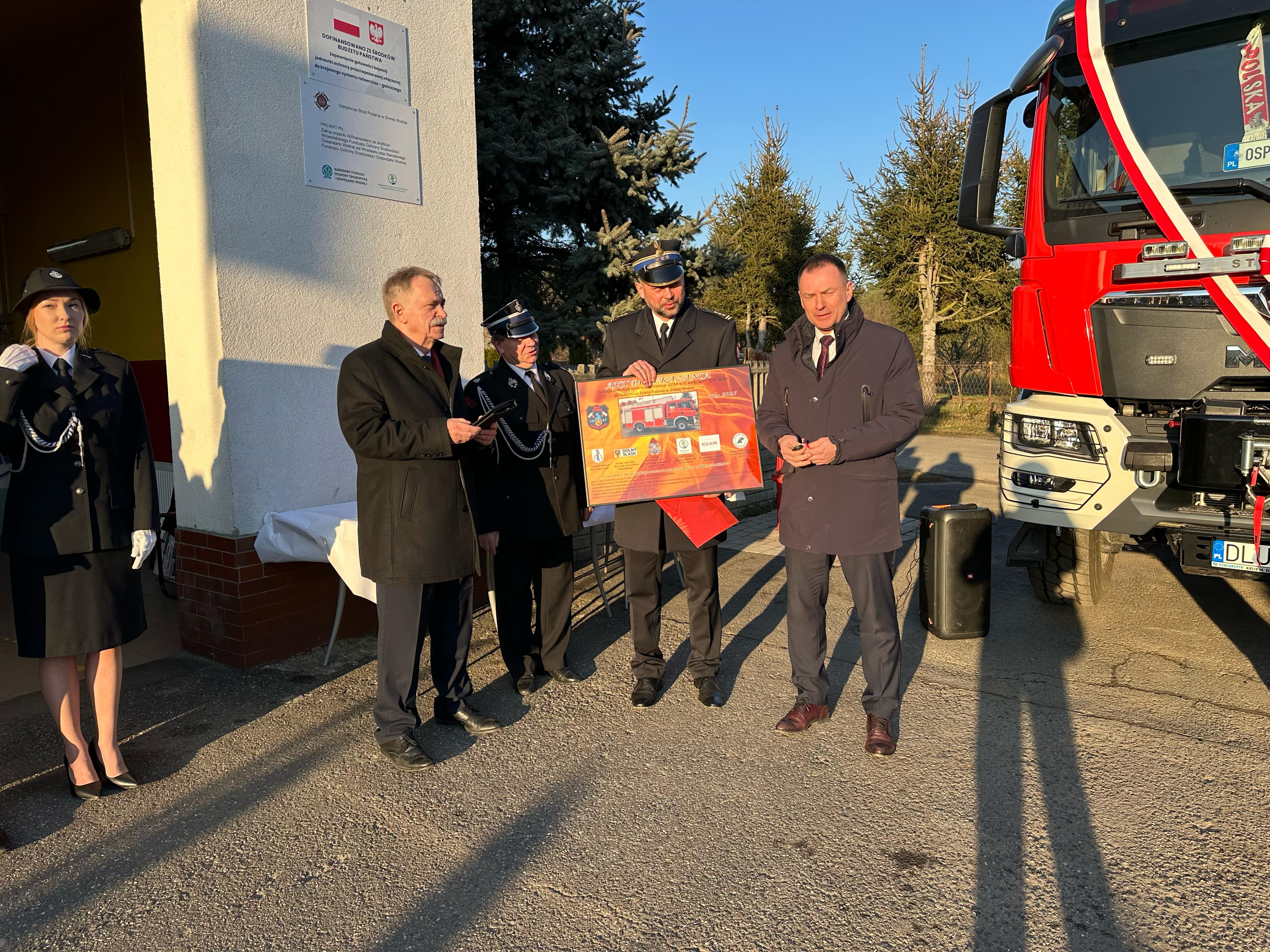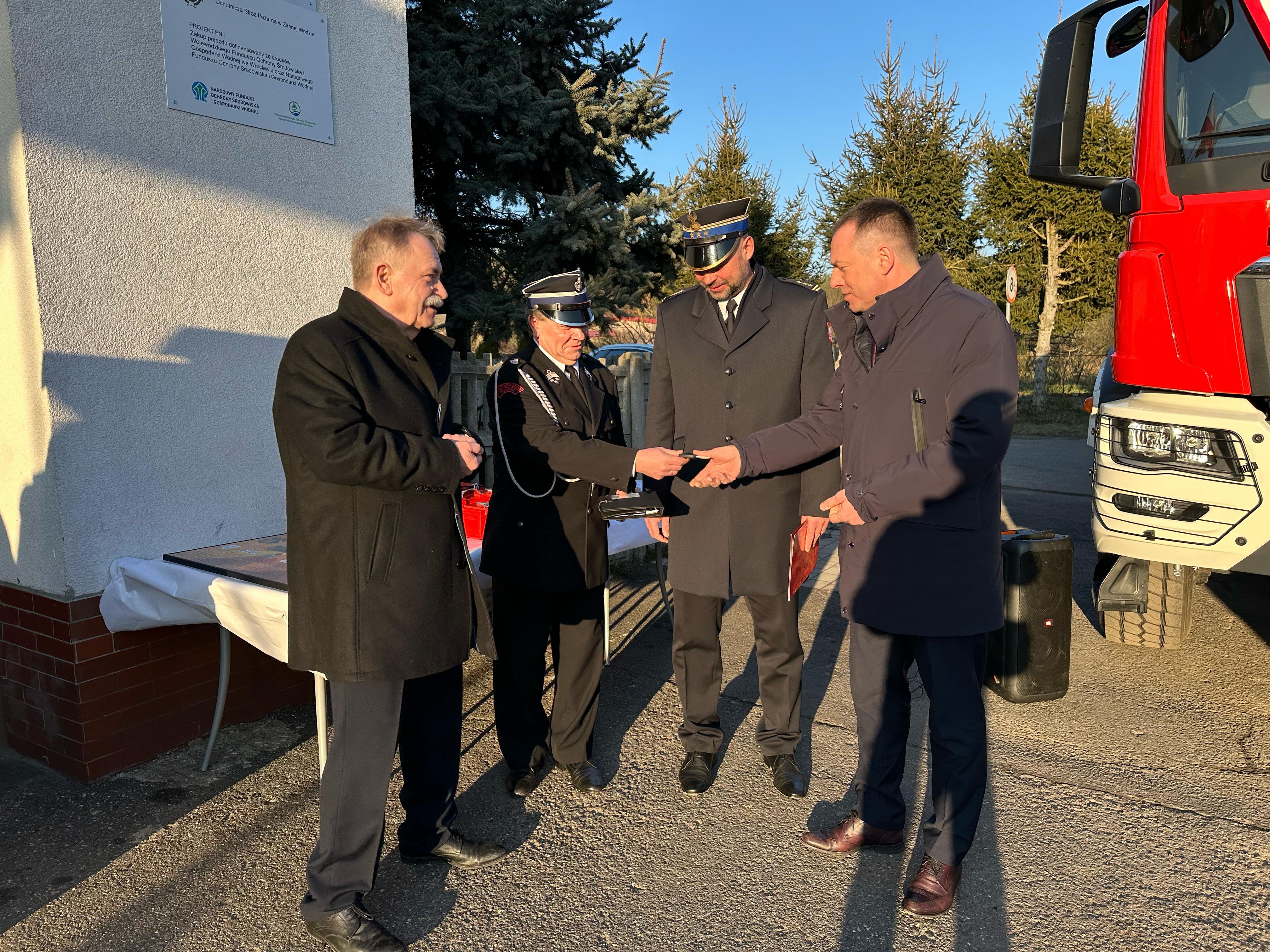 Uroczystość przekazania ciężkiego samochodu ratowniczo-gaśniczego GCBA 6/32 marki MAN TGM 18.320 dla Ochotniczej Straży Pożarnej w Zimnej Wodzie.