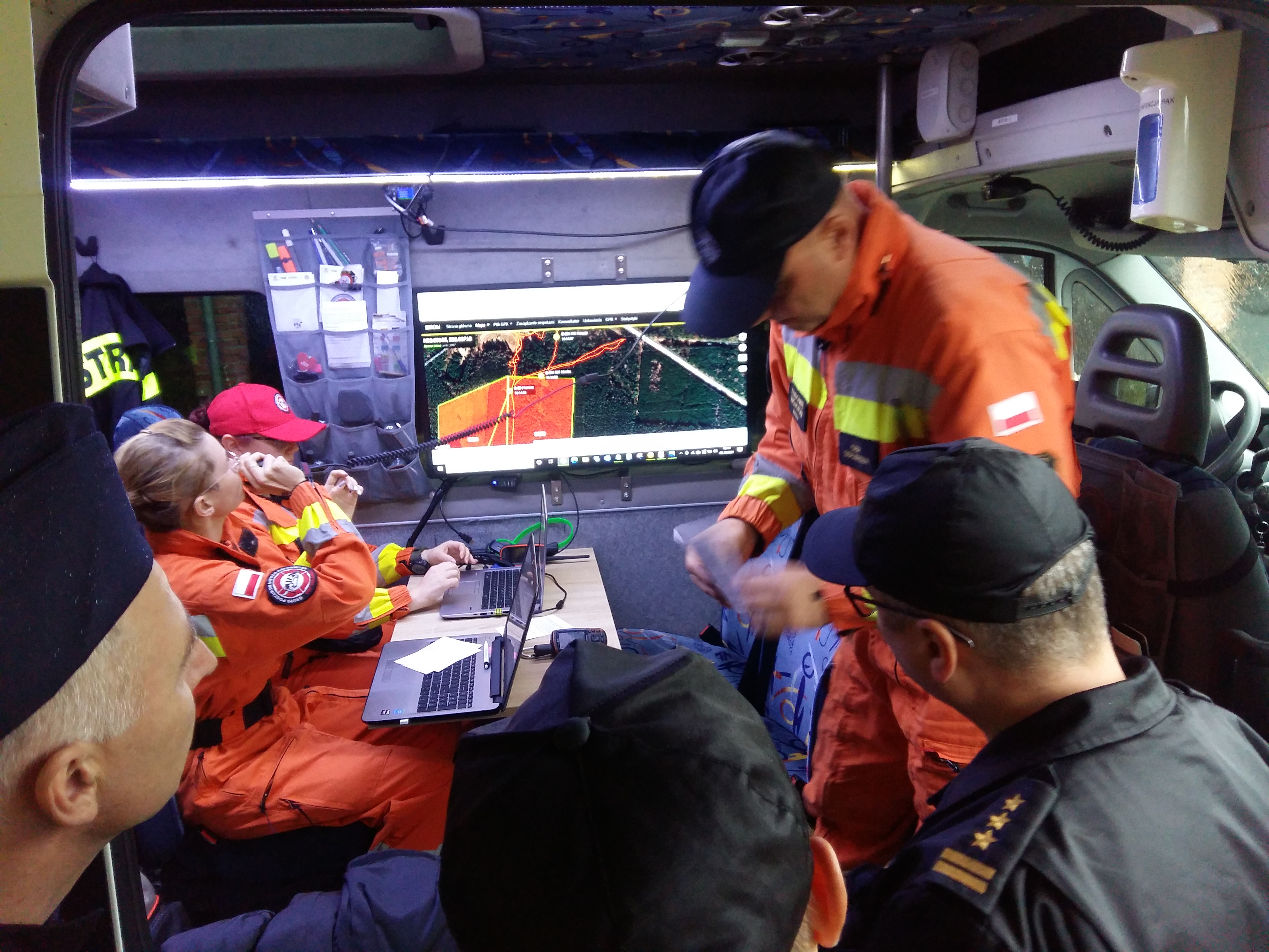 Jako centrum planistyczne wykorzystano Samochód Specjalny Lekki Kwatermistrzowski (SLKw) z OSP w Solarni. Samochód jest wyposażony w środki łączności oraz system wspomagania poszukiwań na bazie aplikacji „Szukamy i Ratujemy” oraz odbiorników GPS. System pozwala zaplanować działania z wykorzystaniem różnych podkładów mapowych oraz obserwować ruchy zespołów w terenie w czasie rzeczywistym.