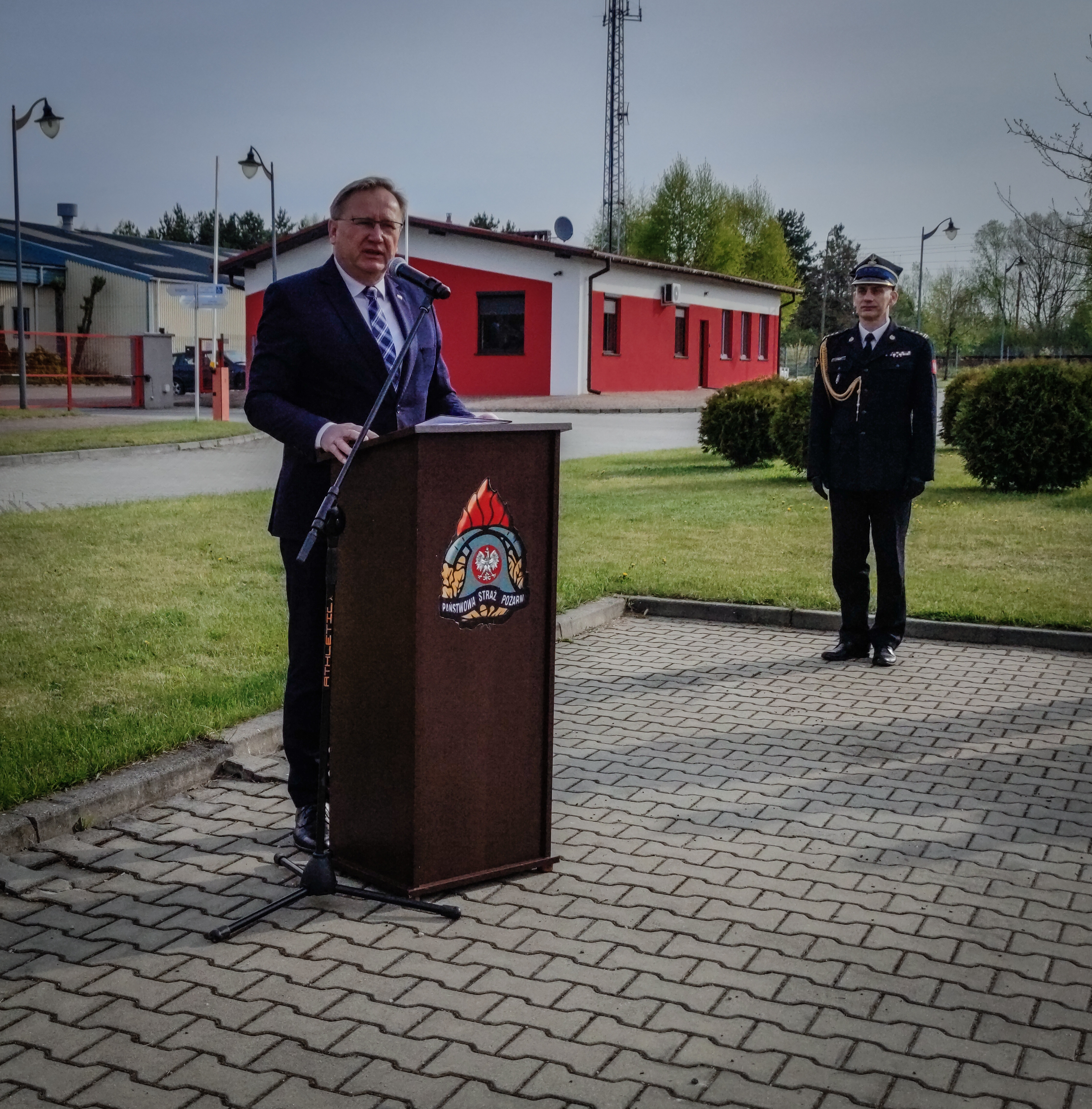 W uroczystości wzięli udział: Poseł na Sejm RP Pan Andrzej Gawron, Komendant Powiatowy PSP w Lublińcu st. bryg. Janusz Bula, strażacy Komendy Powiatowej, przedstawiciele Związku Harcerstwa Polskiego Hufca Lubliniec oraz Młodzieżowa Drużyna Pożarnicza OSP w Koszwicach.