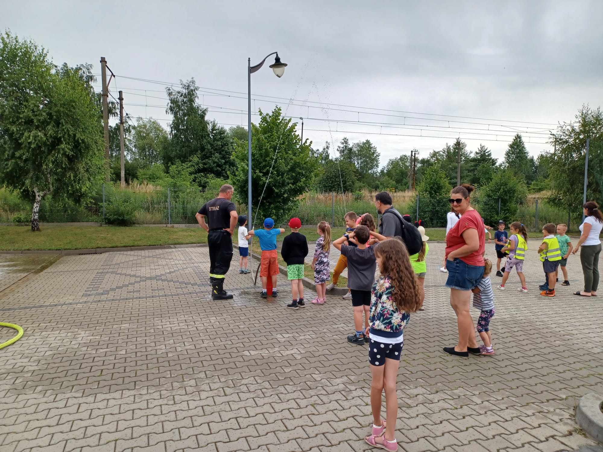 Najmłodsi bardzo chętnie korzystali ze stanowiska gaśniczego, gdzie mogli poczuć się jak prawdziwi strażacy i „ugasić” stożki ostrzegawcze, które odgrywały rolę pożaru.