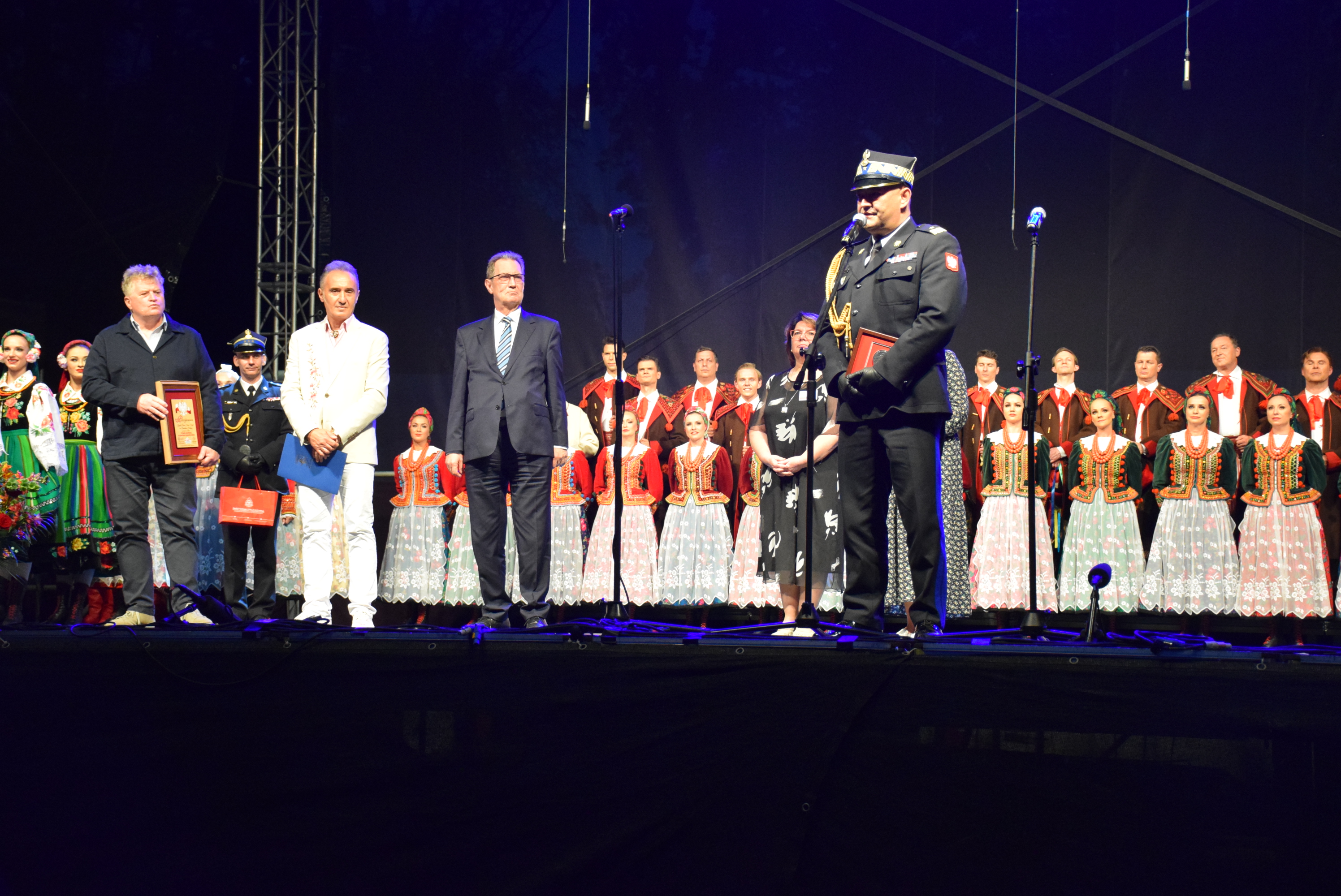Na koszęcińskiej scenie nie zabrakło występów artystycznych - Orkiestry Koncertowej Reprezentacyjnego Zespołu Wojska Polskiego wraz z solistami, pokazu III Pułku Ułanów Śląskich oraz koncertu Katarzyny Suchary z zespołem w programie "Muzyka jest kobietą". Gwiazdą wieczoru był Zespół Pieśni i Tańca "Śląsk", prezentując swój repertuar. – W imieniu służ mundurowych mogę podziękować za tą wspaniałą ucztę. Wrażenia z koncertu Zespołu „Śląsk” za każdym razem są pierwotne – ciągle się widzi coś nowego, ale zawsze widzi się tą samą doskonałość – doskonałość wykonania. To artyzm tych wszystkich osób, którzy dają z siebie wszystko. Chylimy przed Wami czoła, przed Waszym profesjonalizmem. Jesteśmy dumni z Zespołu „Śląsk”, bo jesteście diamentem w koronie Rzeczpospolitej i najlepszym mecenasem sztuki polskiej na świecie – tymi słowami Śląski Komendant Wojewódzki PSP nadbryg. Jacek Kleszczewski podziękował za występ Zespołu, będący ukoronowaniem tegorocznych obchodów 30-lecia powstania Państwowej Straży Pożarnej.