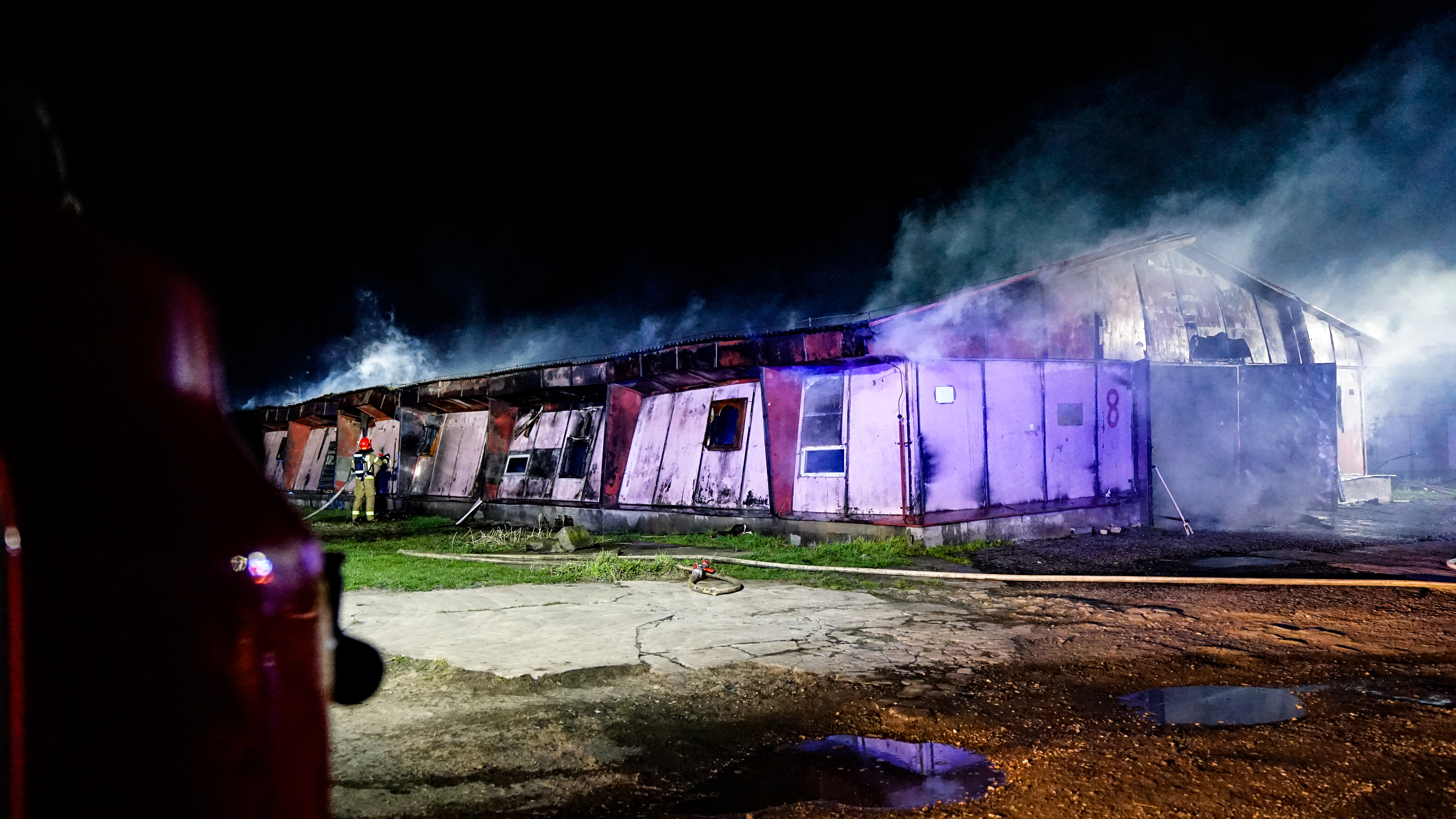 Po dojeździe na miejsce zastano budynek w wymiarach 100x12 metrów konstrukcji drewnianej, dach pokryty blachodachówką w całości objęty pożarem.