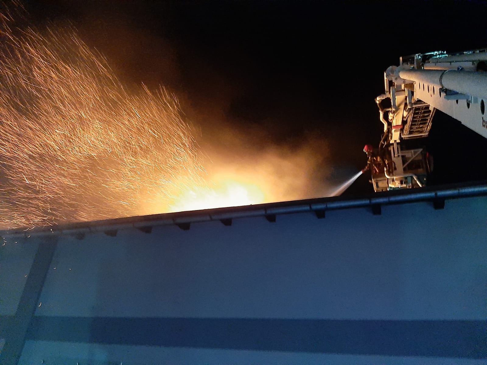 Działania JOP polegały na zabezpieczeniu terenu działań, podaniu siedmiu prądów gaśniczych na palącą się przybudówkę, objęte pożarem elementy konstrukcyjne dachu oraz przeszukaniu wszystkich pomieszczeń przedmiotowego budynku w celu wykluczenia ewentualnej obecności osób postronnych w obiekcie - brak poszkodowanych. Pożar powstał najprawdopodobniej w ww. przybudówce przedostając się do górnej kondygnacji przez otwory okienne i technologiczne. Na poddaszu nie były składowane żadne materiały palne co wpłynęło korzystnie na warunki pożarowe. Pożar przestał się rozprzestrzeniać o godz. 3:55, dogaszanie trwało niemalże do godz. 8:00.