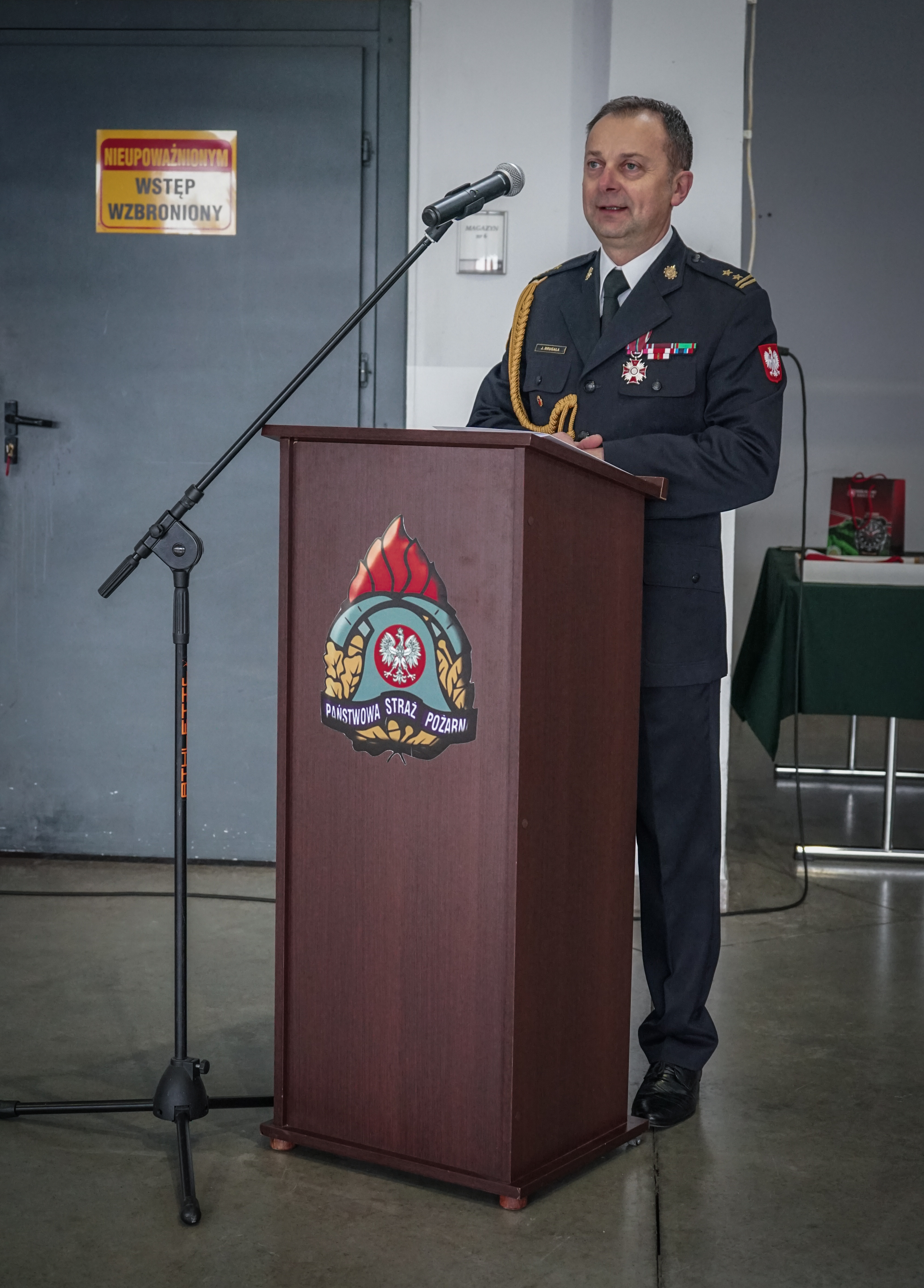 W imieniu swoim oraz wszystkich funkcjonariuszy KP PSP w Lublińcu podziękowania za wzorową służbę złożył komendant powiatowy PSP w Lublińcu st. bryg. Janusz Bula. Odchodzący na emeryturę odebrał również wiele serdecznych życzeń wszelkiej pomyślności i powodzenia od kolegów oraz otrzymał okolicznościowy upominek.