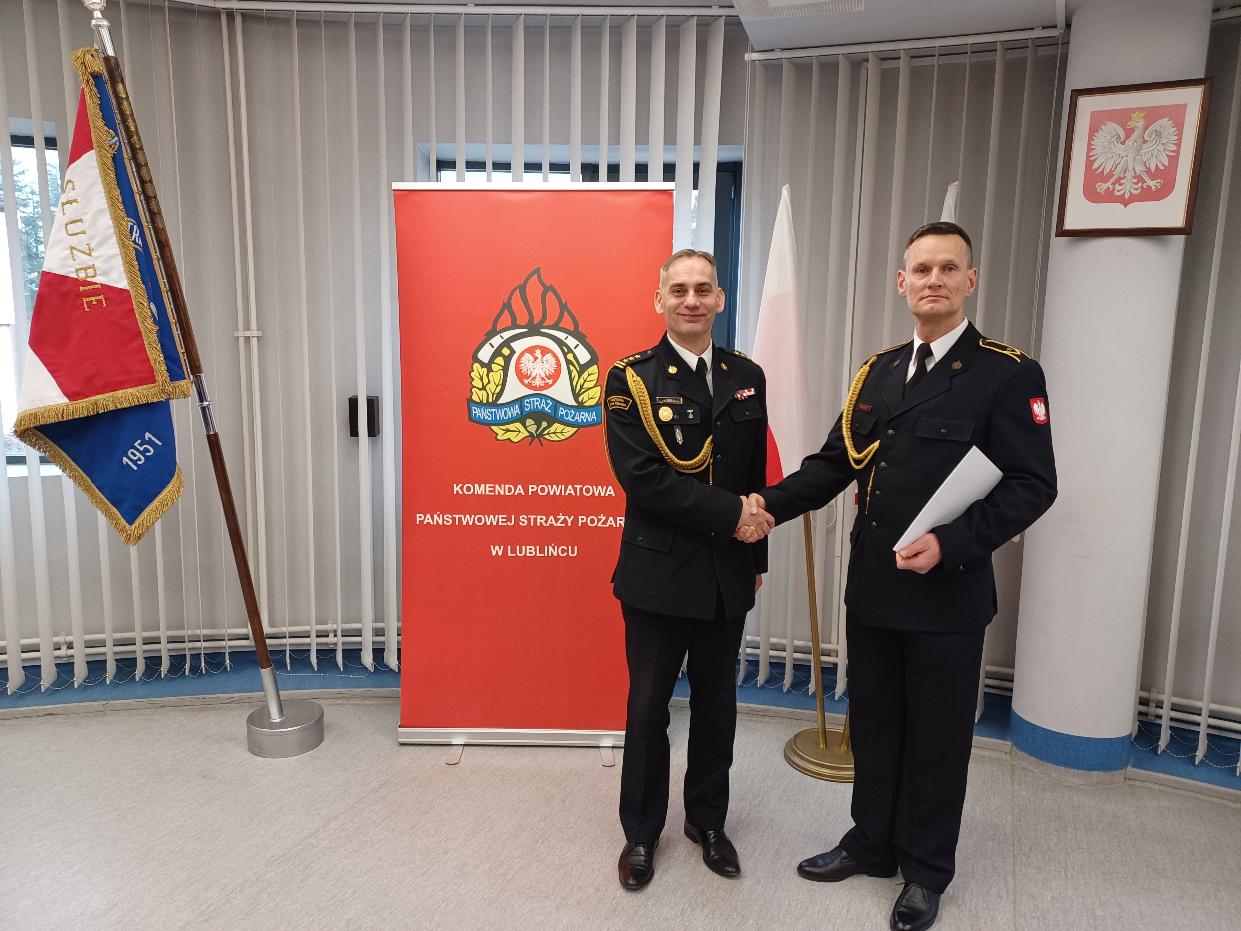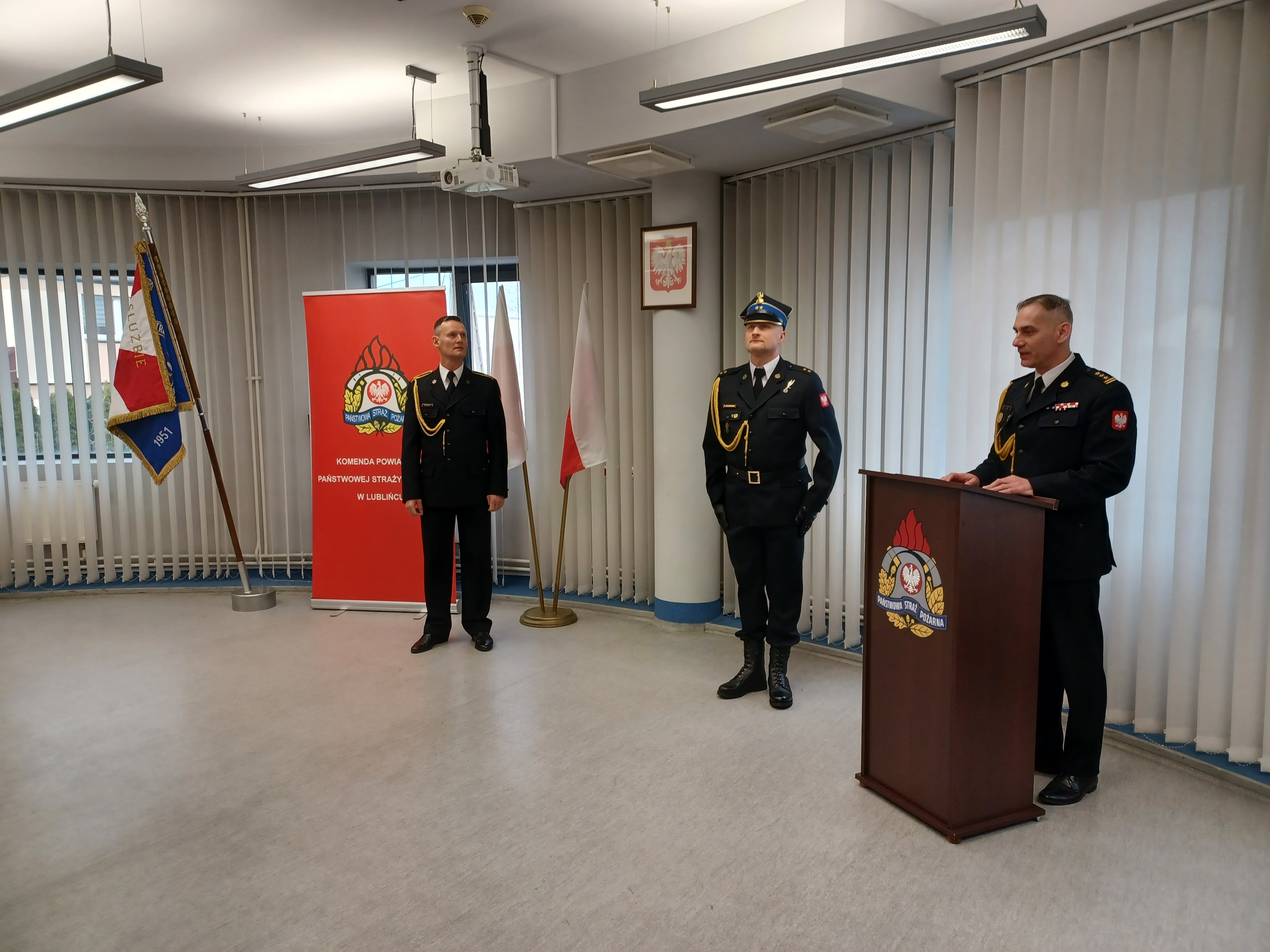 W imieniu swoim oraz wszystkich funkcjonariuszy KP PSP w Lublińcu podziękowania za wzorową służbę złożył komendant powiatowy PSP w Lublińcu st. bryg. Janusz Bula. Odchodzący na emeryturę odebrał również wiele serdecznych życzeń wszelkiej pomyślności i powodzenia od kolegów oraz otrzymał okolicznościowy upominek.