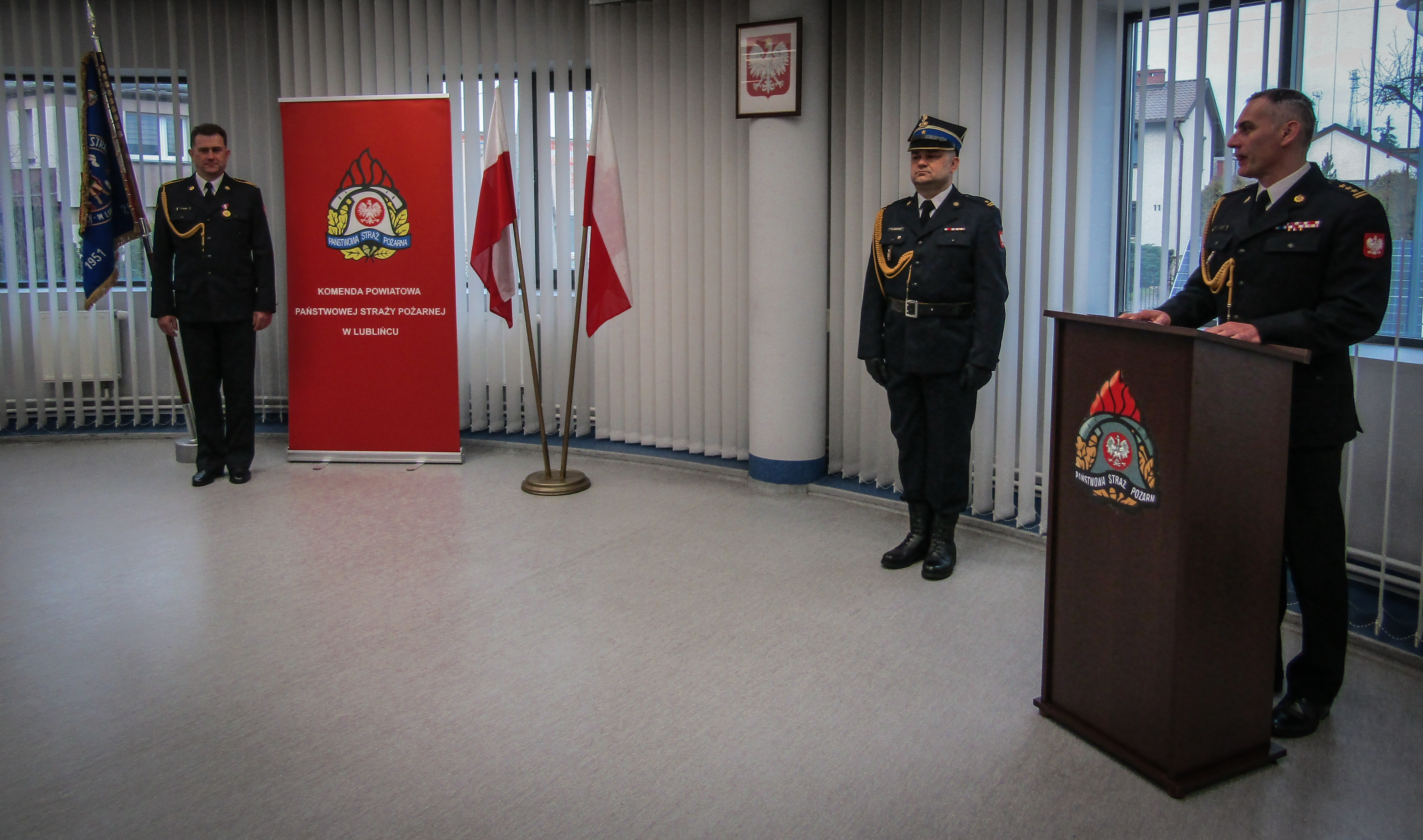 W imieniu swoim oraz wszystkich funkcjonariuszy KP PSP w Lublińcu podziękowania za wzorową służbę złożył komendant powiatowy PSP w Lublińcu st. bryg. Janusz Bula. Odchodzący na emeryturę odebrał również wiele serdecznych życzeń wszelkiej pomyślności i powodzenia od kolegów oraz otrzymał okolicznościowy upominek.