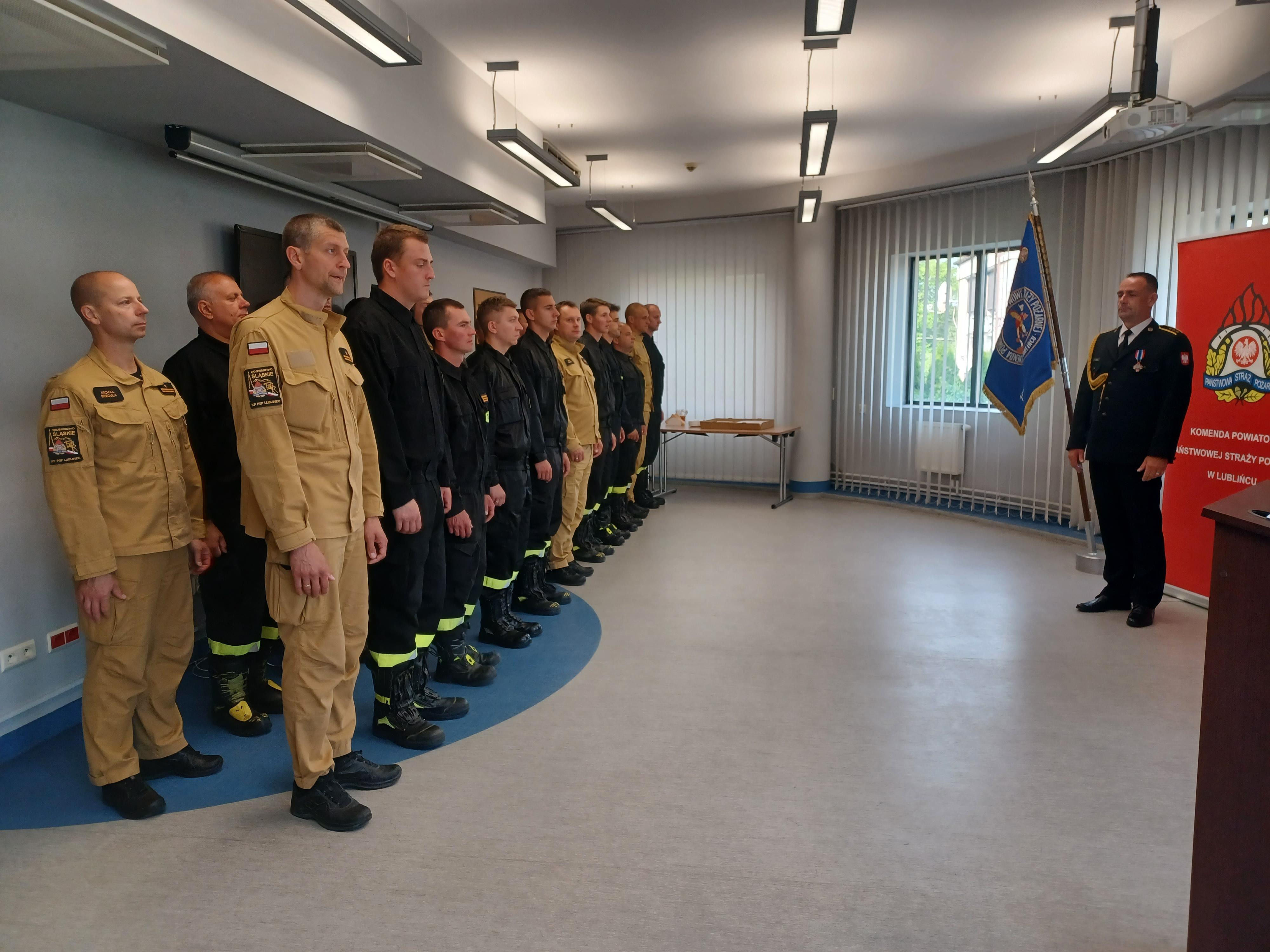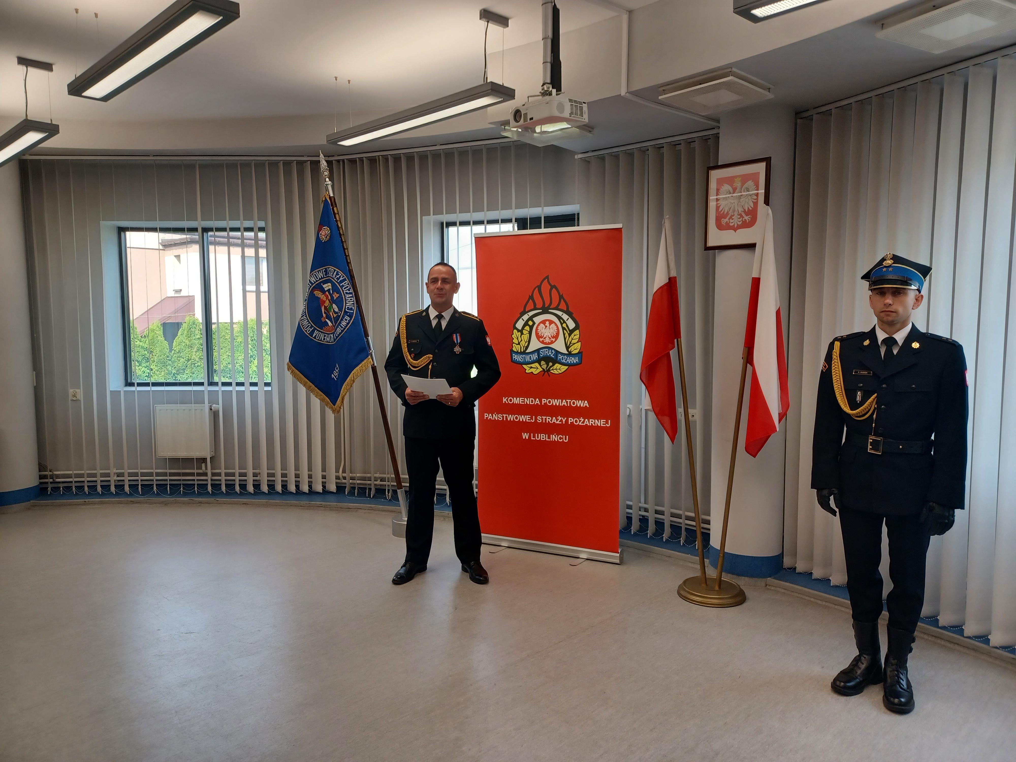 W imieniu swoim oraz wszystkich funkcjonariuszy KP PSP w Lublińcu podziękowania za wzorową służbę złożył komendant powiatowy PSP w Lublińcu st. bryg. Janusz Bula. Odchodzący na emeryturę odebrał również wiele serdecznych życzeń wszelkiej pomyślności i powodzenia od kolegów oraz otrzymał okolicznościowy upominek.