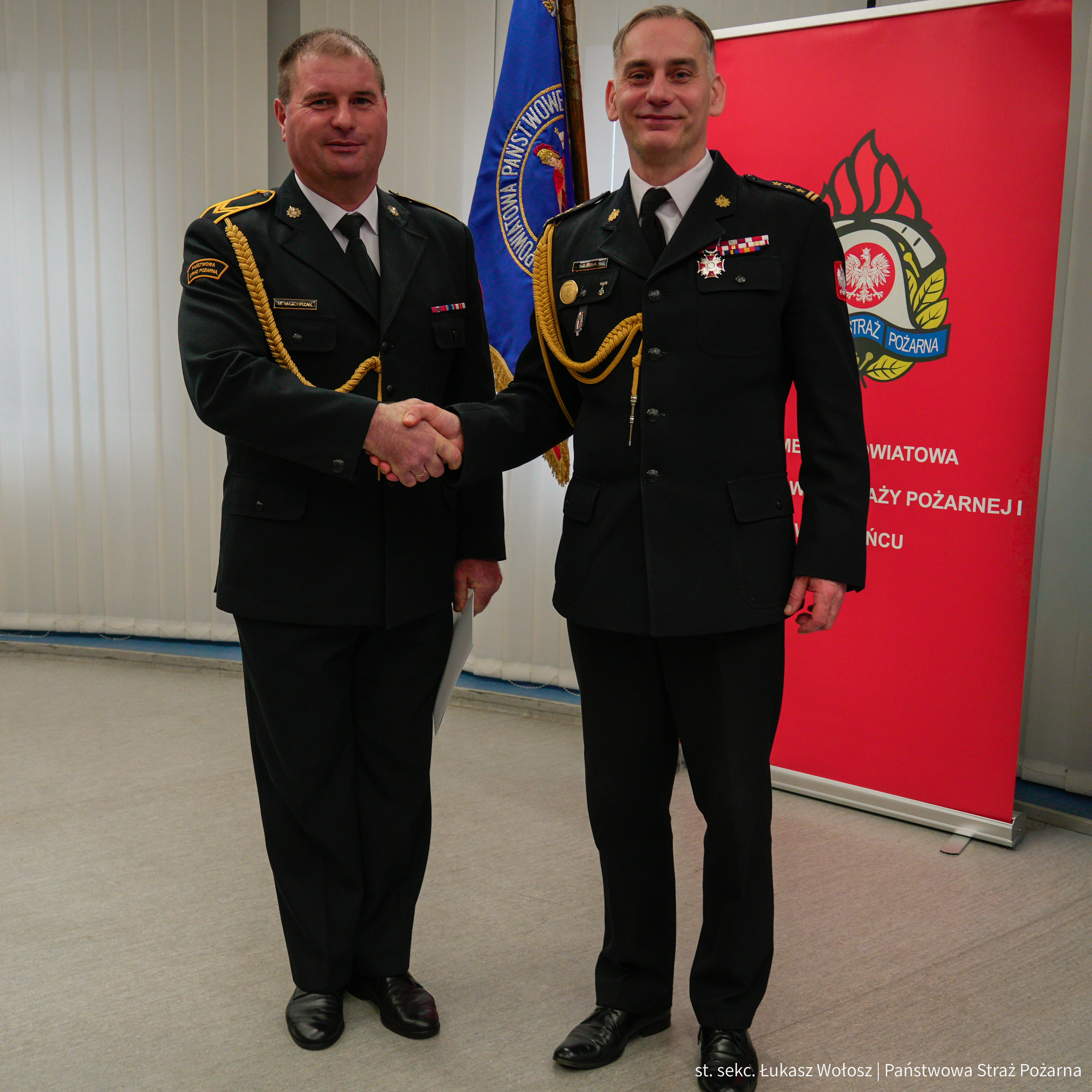 W imieniu swoim oraz wszystkich funkcjonariuszy KP PSP w Lublińcu podziękowania za wzorową służbę złożył komendant powiatowy PSP w Lublińcu st. bryg. Janusz Bula. Odchodzący na emeryturę odebrał również wiele serdecznych życzeń wszelkiej pomyślności i powodzenia od kolegów oraz otrzymał okolicznościowy upominek.