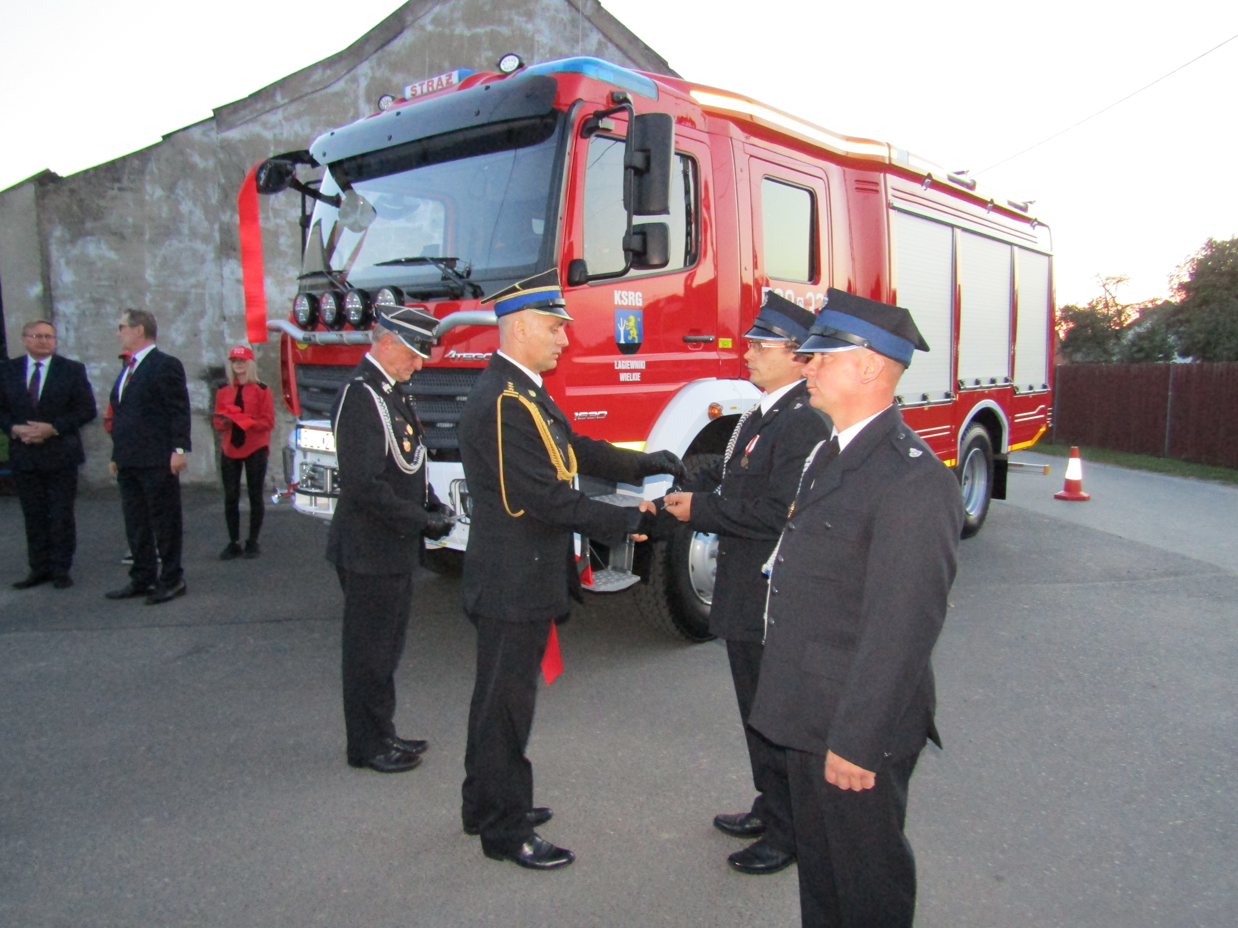 Prezentacja i poświęcenie nowego samochodu ratowniczo-gaśniczego w Łagiewnikach Wielkich