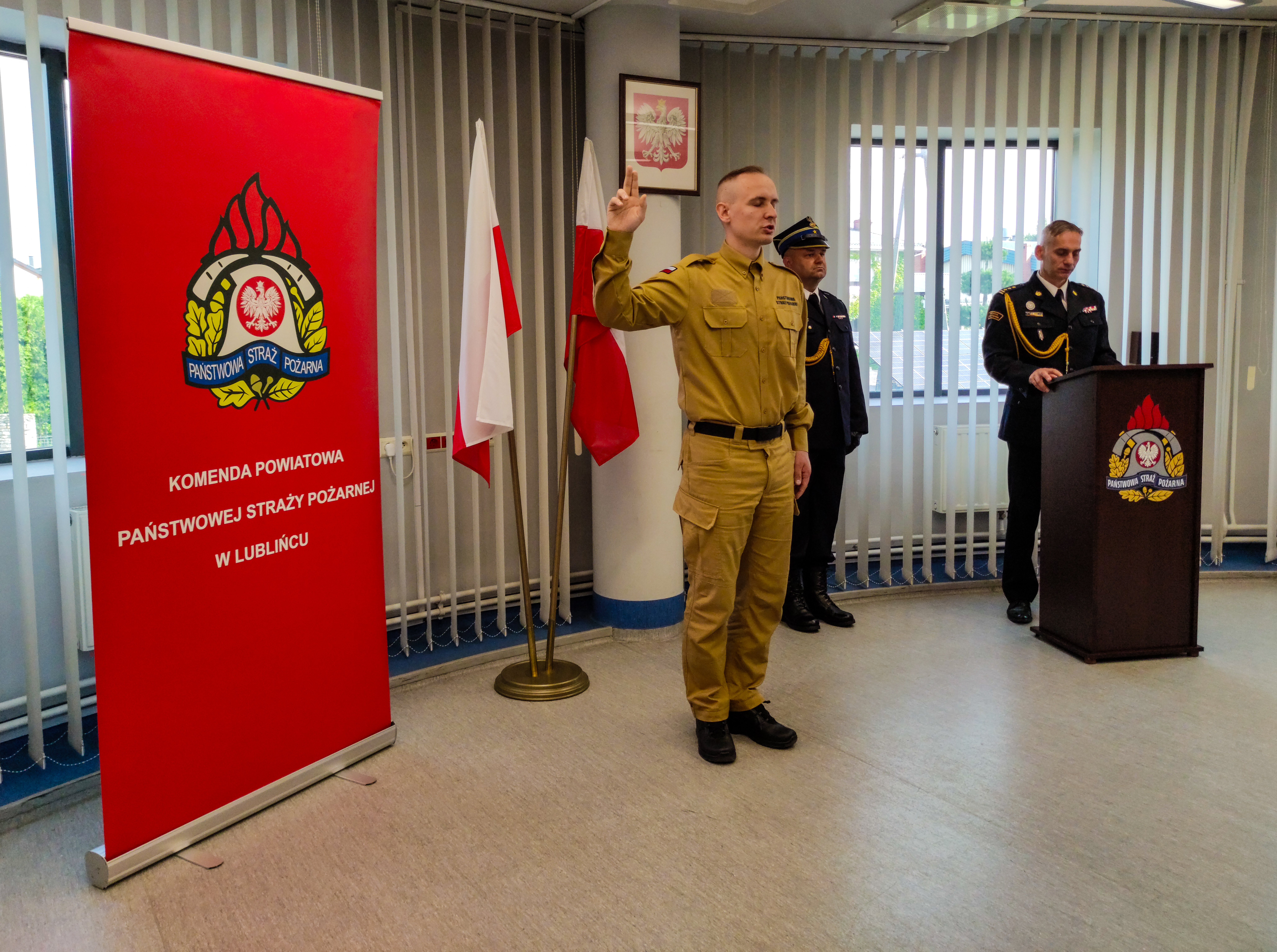Uroczyste ślubowanie strażaka w Komendzie Powiatowej Państwowej Straży Pożarnej w Lublińcu