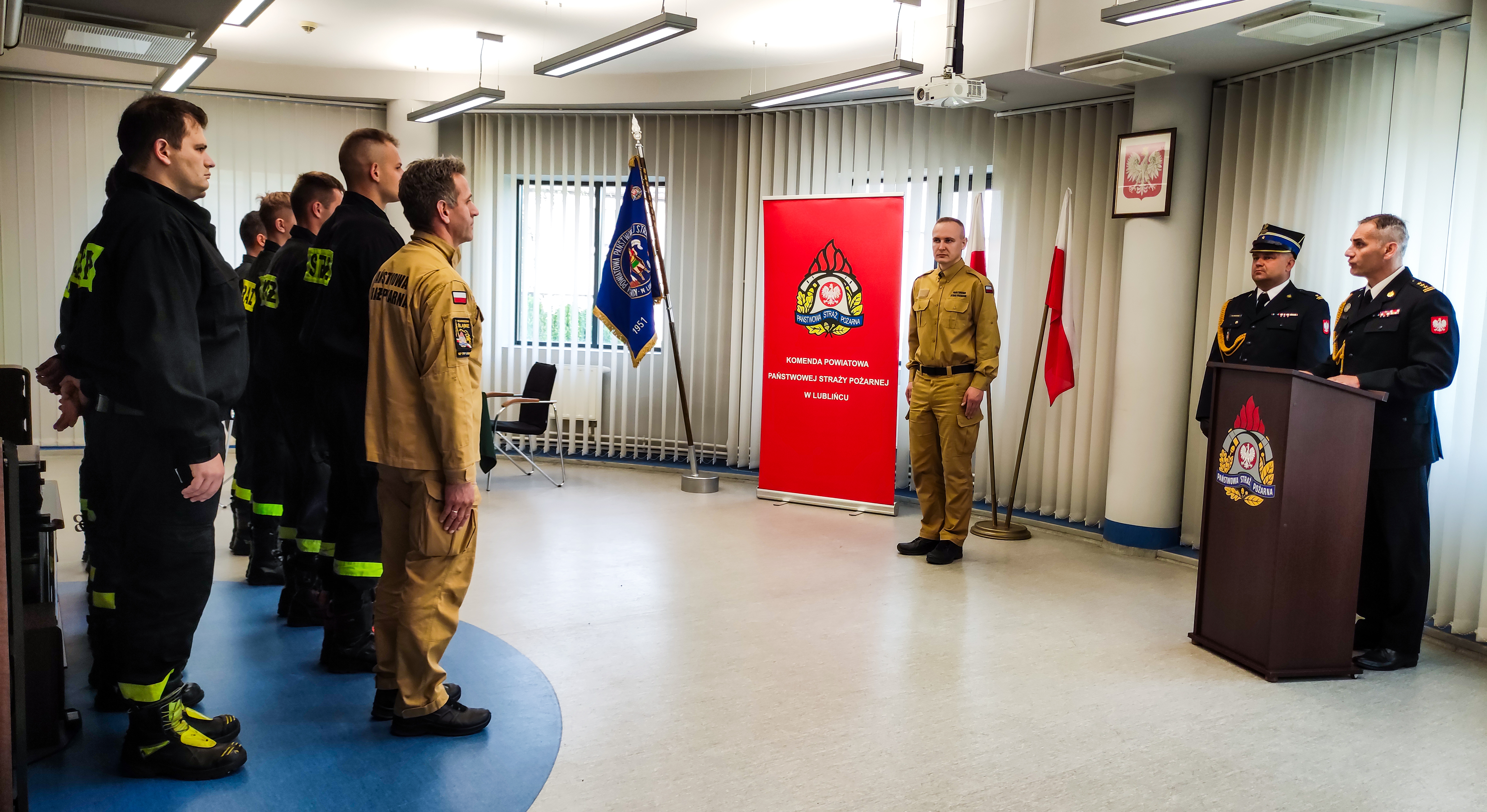 9 sierpnia 2023 r. w Komendzie Powiatowej Państwowej Straży Pożarnej w Lublińcu odbyła się uroczysta zbiórka z okazji ślubowania, które złożył str. Tomasz Adamek przyjęty do służby przygotowawczej w Państwowej Straży Pożarnej. Ślubowanie przyjął Komendant Powiatowy Państwowej Straży Pożarnej w Lublińcu st. bryg. Janusz Bula.