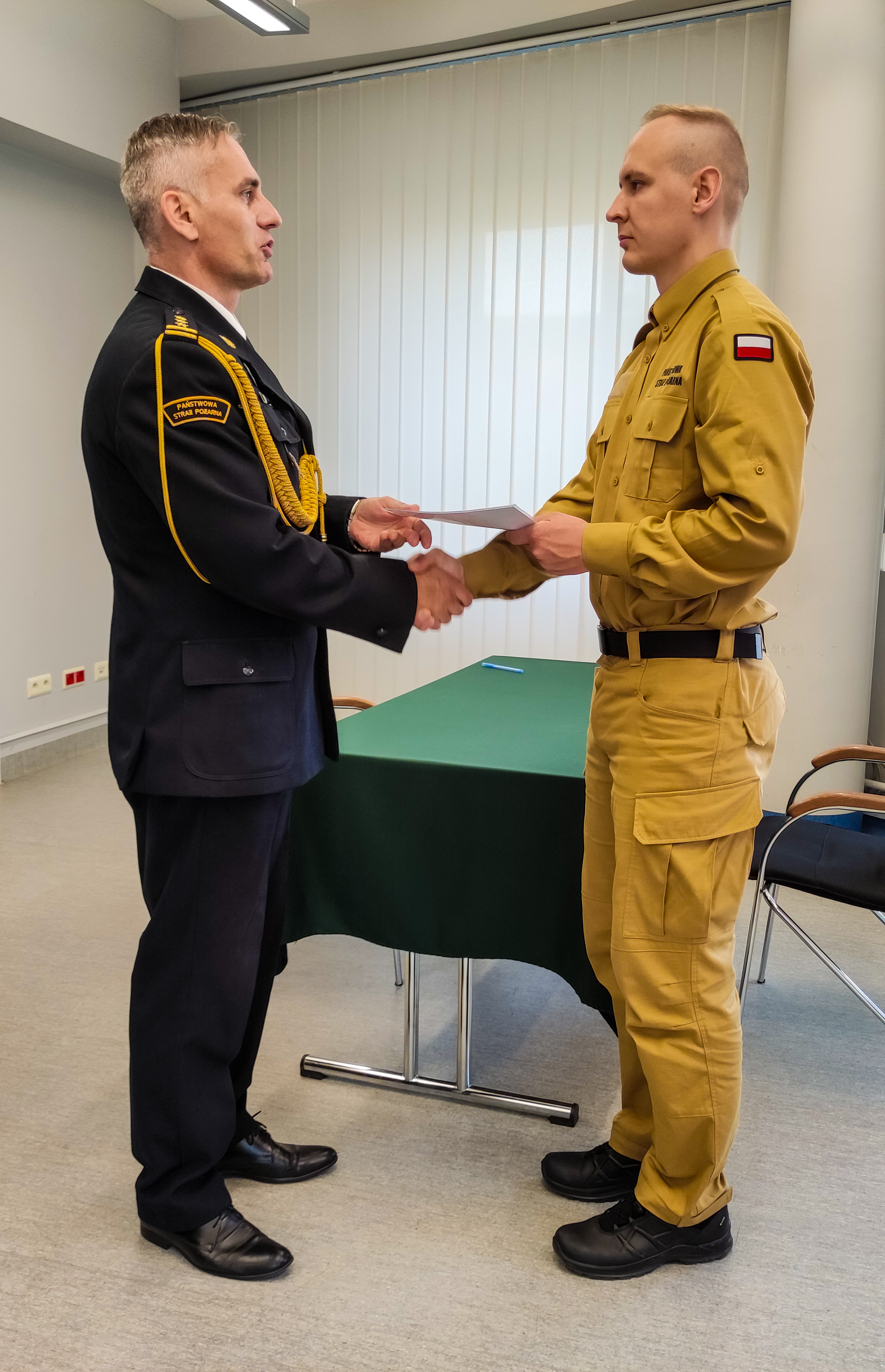 Nowo przyjętemu strażakowi życzymy zdrowia, wytrwałości oraz realizowania się w służbie. Niech satysfakcja z dokonanego wyboru drogi życiowej i zawodowej w przyszłości przyniesie Ci dumę z faktu niesienia pomocy potrzebującym, jak również z bycia strażakiem.