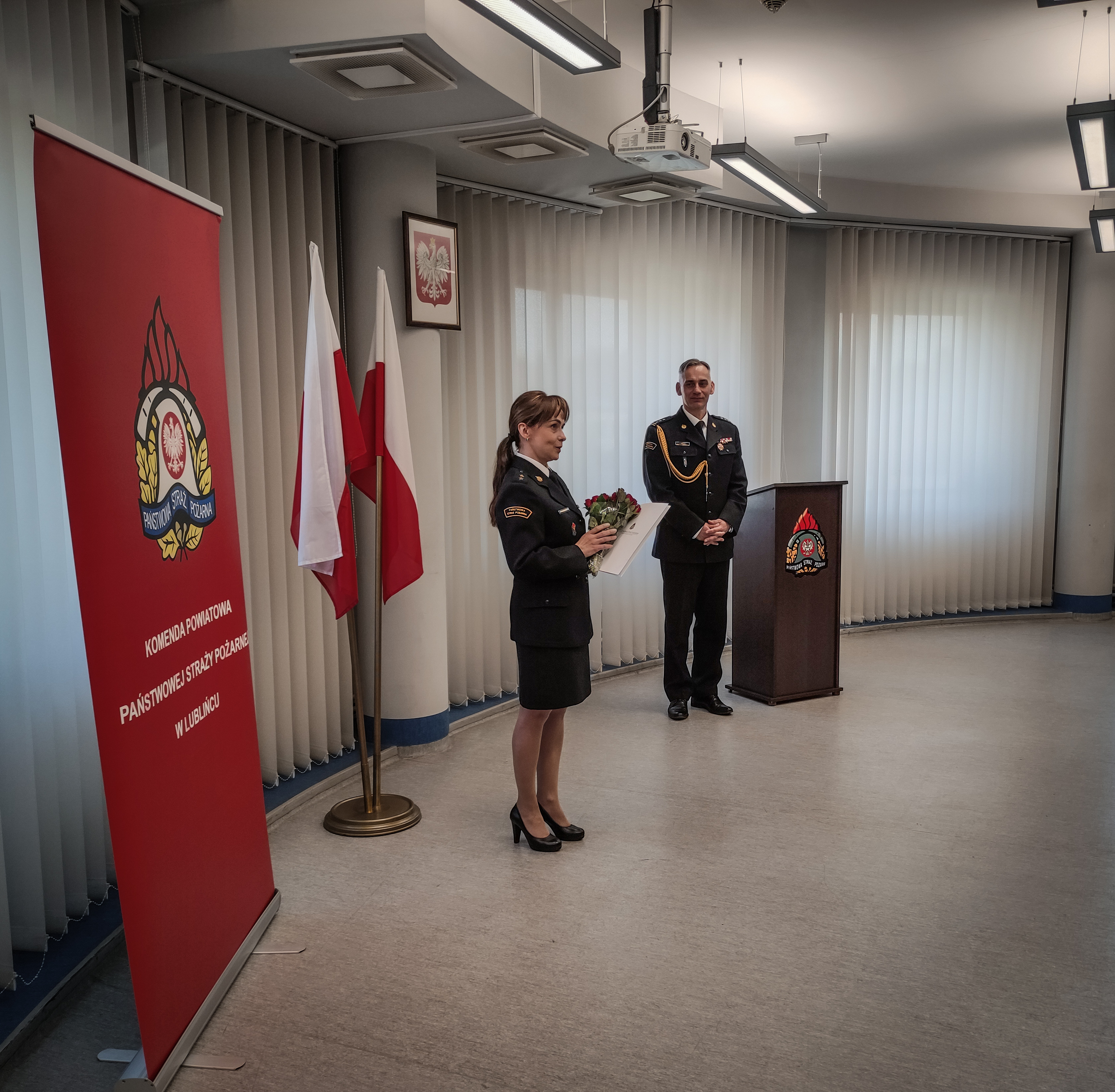 1.06.2022 roku w Komendzie Powiatowej PSP w Lublińcu miała miejsce uroczystość mianowania mł. kpt. Kariny Szwed na stanowisko główny księgowy.