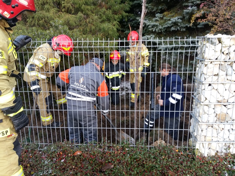 Przybyli na miejsce pracownicy pogotowia gazowego, poprzez założenie zacisków zatrzymali emisję gazu, a następnie przystąpiono do wymiany uszkodzonego odcinka.