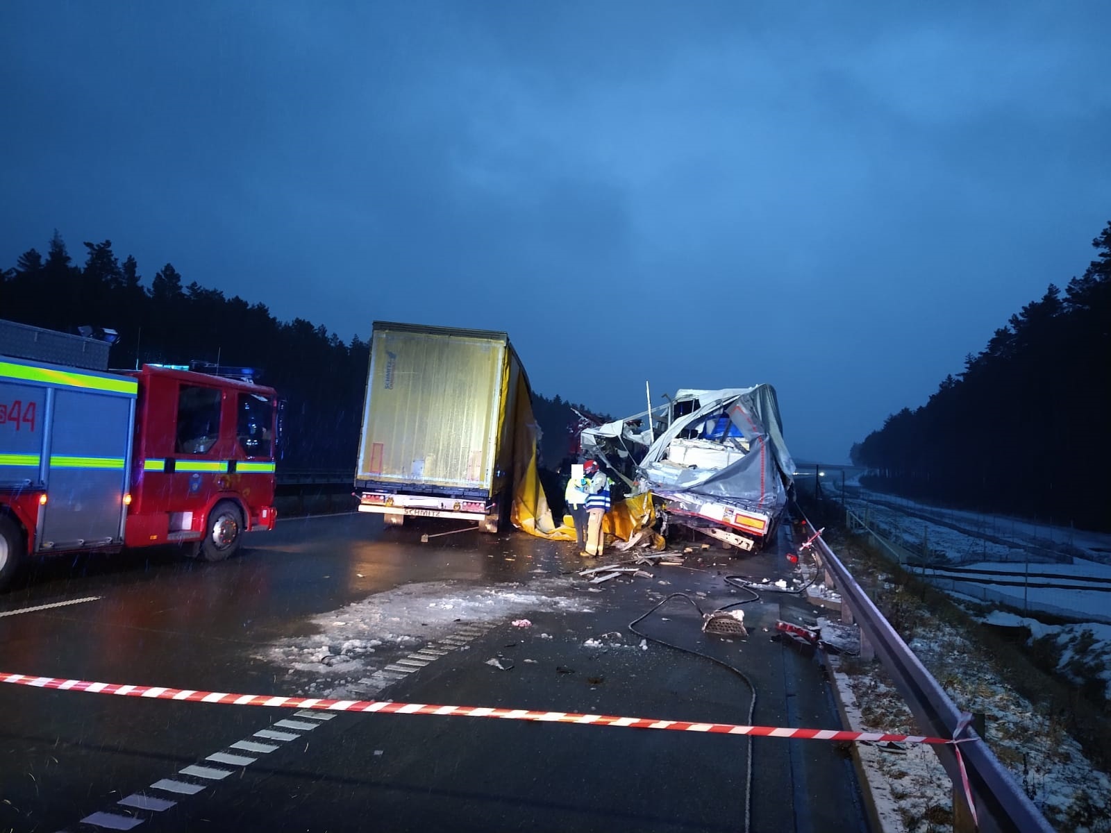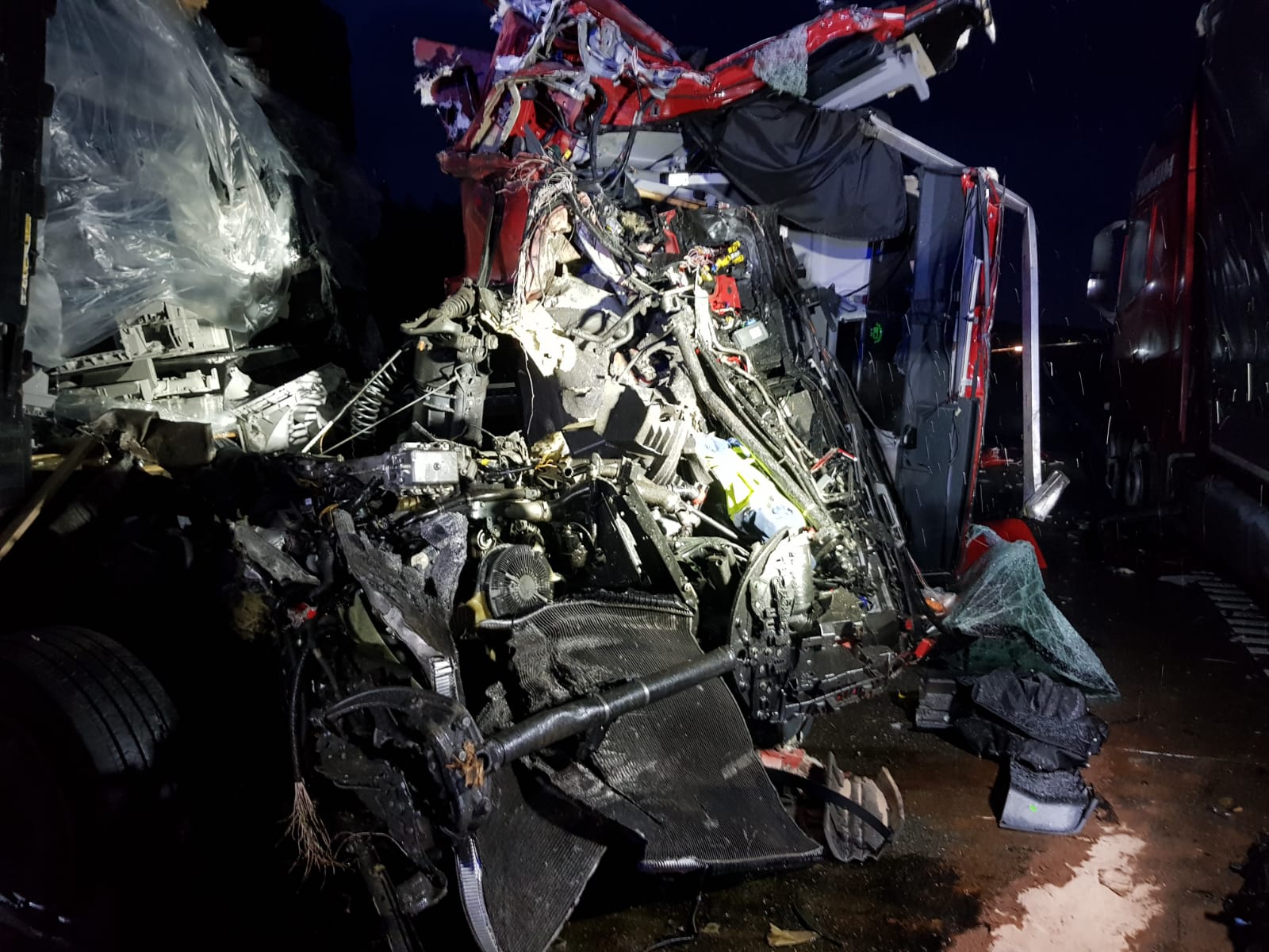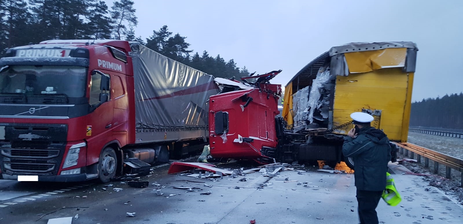 26.01.2021 r. dyżurny stanowiska kierowania Komendanta Powiatowego PSP w Lublińcu o godz. 5:38 otrzymał informację, że na 467 kilometrze autostrady A1 w kierunku Pyrzowic samochód ciężarowy zderzył się z drugim samochodem ciężarowym. Po dojeździe zastępów straży pożarnej na miejsce zdarzenia zastano dwa samochody ciężarowe po zderzeniu (jeden pojazd uderzył w tył drugiego). Kierujący opuścili pojazdy o własnych siłach przed przybyciem Jednostek Ochrony Przeciwpożarowej, decyzją lekarza przybyłego na miejsce jeden z nich został zabrany do szpitala. W godzinach 05:38 do 08:45 autostrada A1 w kierunku południowym (kierunek Pyrzowice) był całkowicie nieprzejezdny a Policja zorganizowała objazd. Od godz. 8.45 do 10:20 ruch odbywał się jednym pasem jezdni.