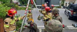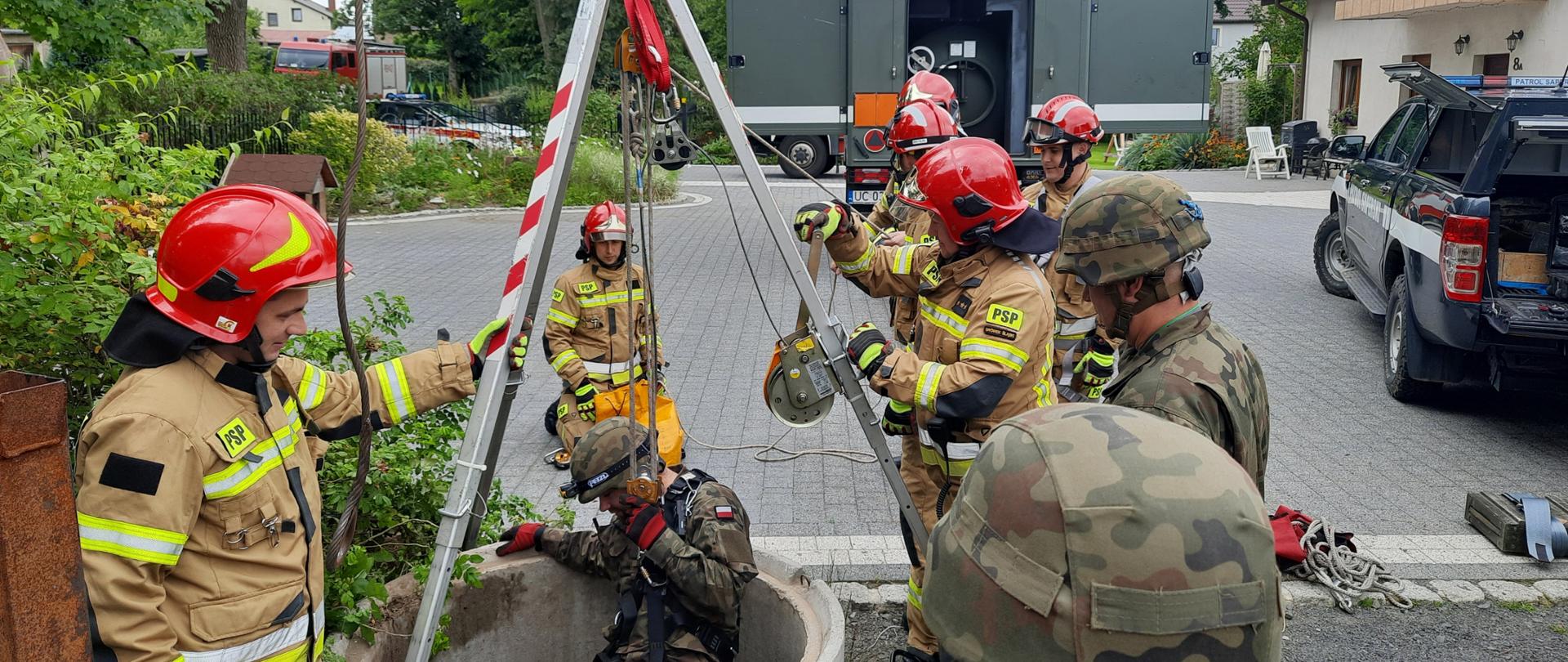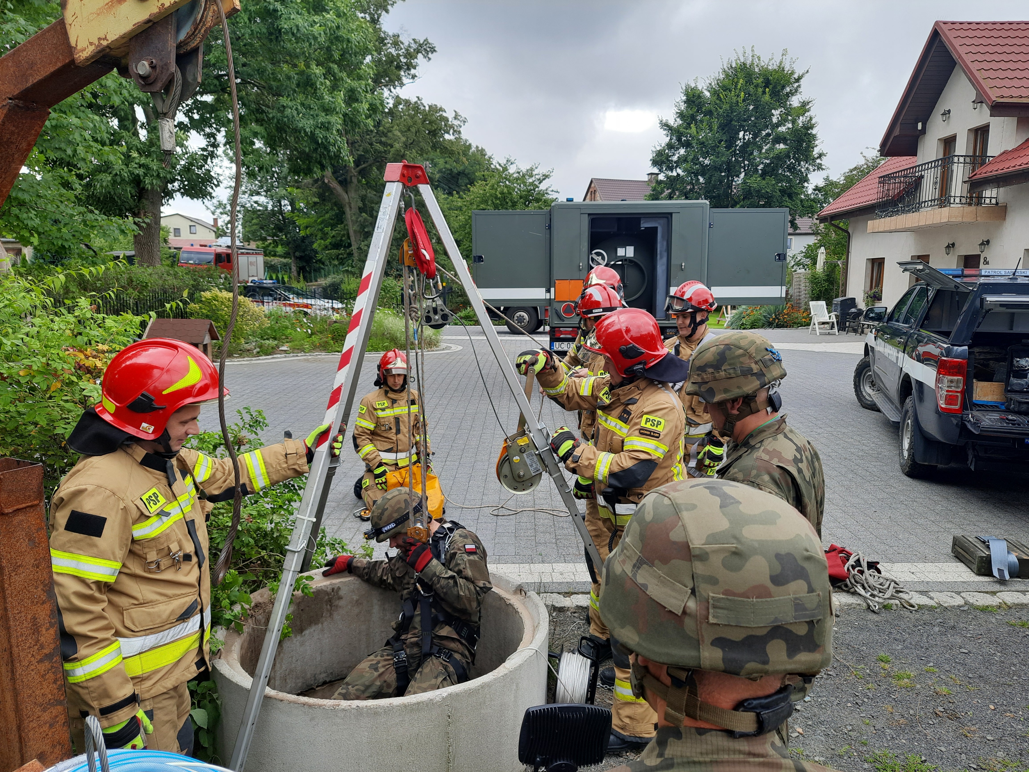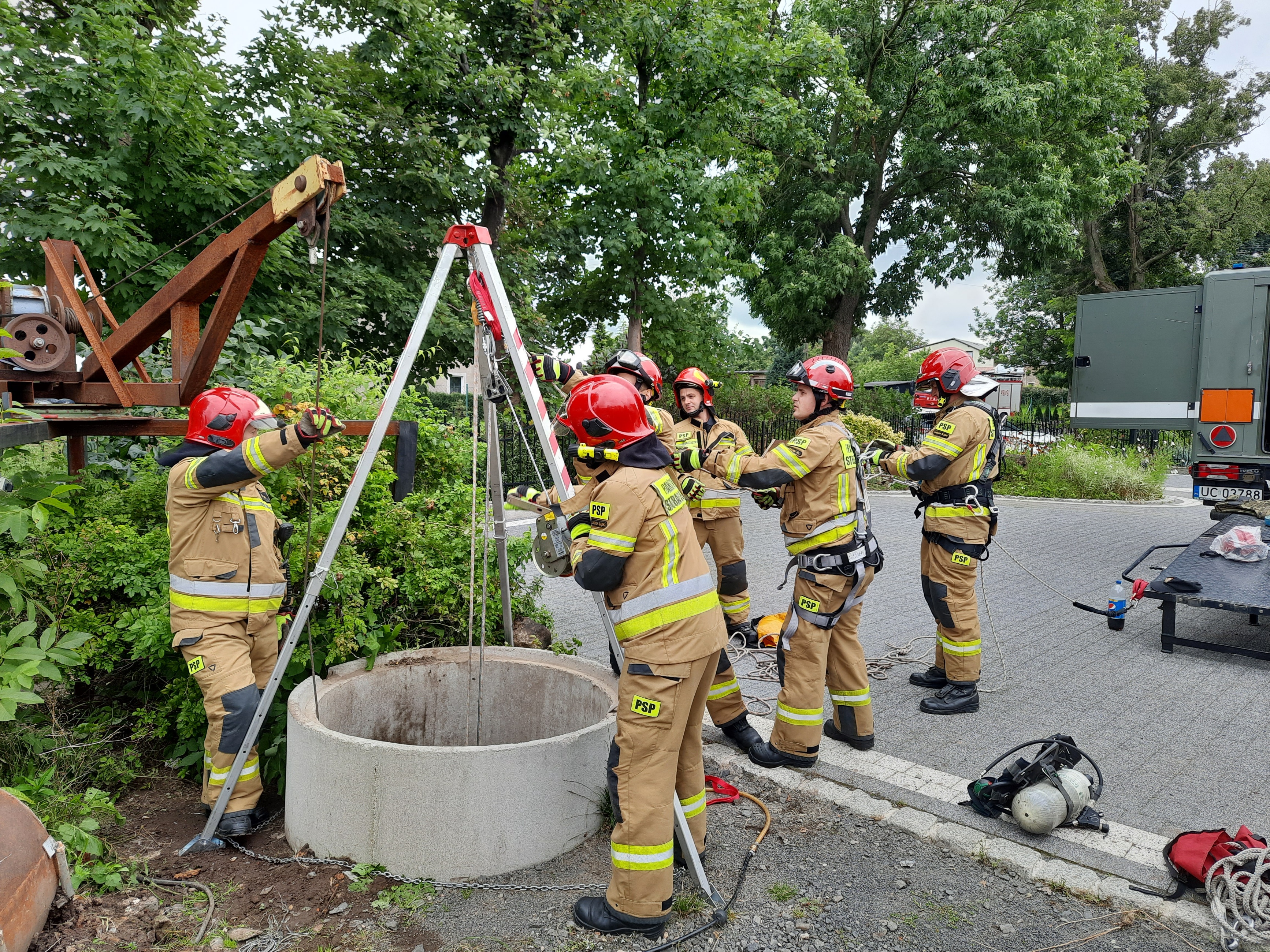Działania polegały na zabezpieczeniu miejsca zdarzenia, rozstawieniu trójnogu ratowniczego nad studnią w celu umożliwienia opuszczenia saperów do wnętrza studni przy pomocy technik alpinistycznych i przeprowadzenia rozpoznania minersko-pirotechnicznego. Dokonano również pomiarów w studni przy pomocy detektora wielogazowego w celu określenia występowania w studni stężeń substancji niebezpiecznych.