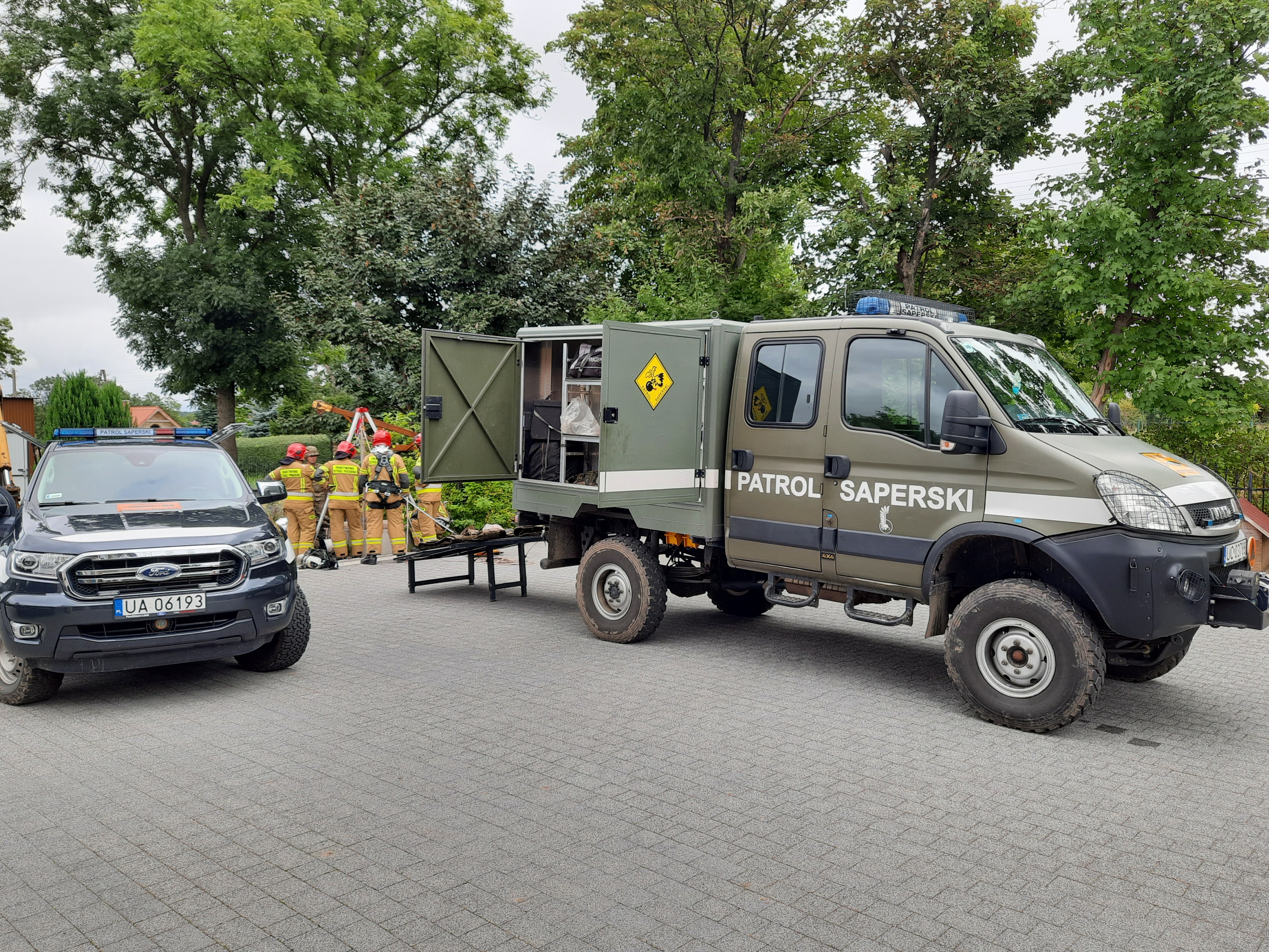 Na prośbę patrolu saperskiego do zdarzenia zostały zadysponowane dwa zastępy strażaków z Jednostki Ratowniczo-Gaśniczej PSP w Lwówku Śląskim. Na miejsce zdarzenia przybył również Zastępca Komendanta Powiatowego PSP w Lwówku Śląskim.
