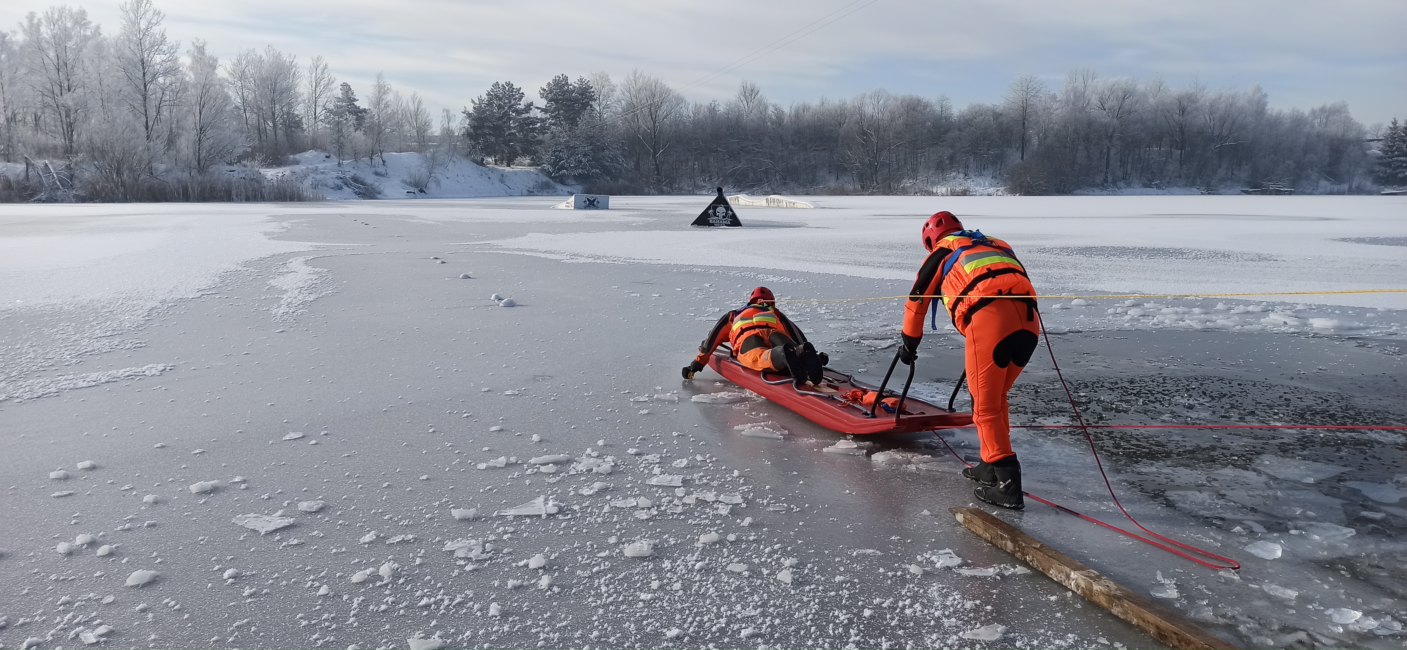 Zajęcia odbyły się na Jeziorze Rakowickim. Ćwiczenia miały na celu doskonalenie i pogłębienie umiejętności, sposobów i technik pomocy poszkodowanym na akwenach pokrytych lodem, min.: