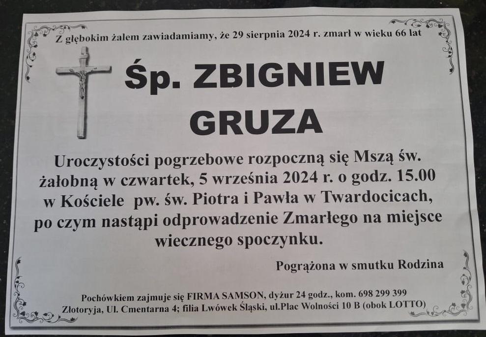 informacja o śmierci st. ogn. w st. spocz. Zbigniewa Gruzy