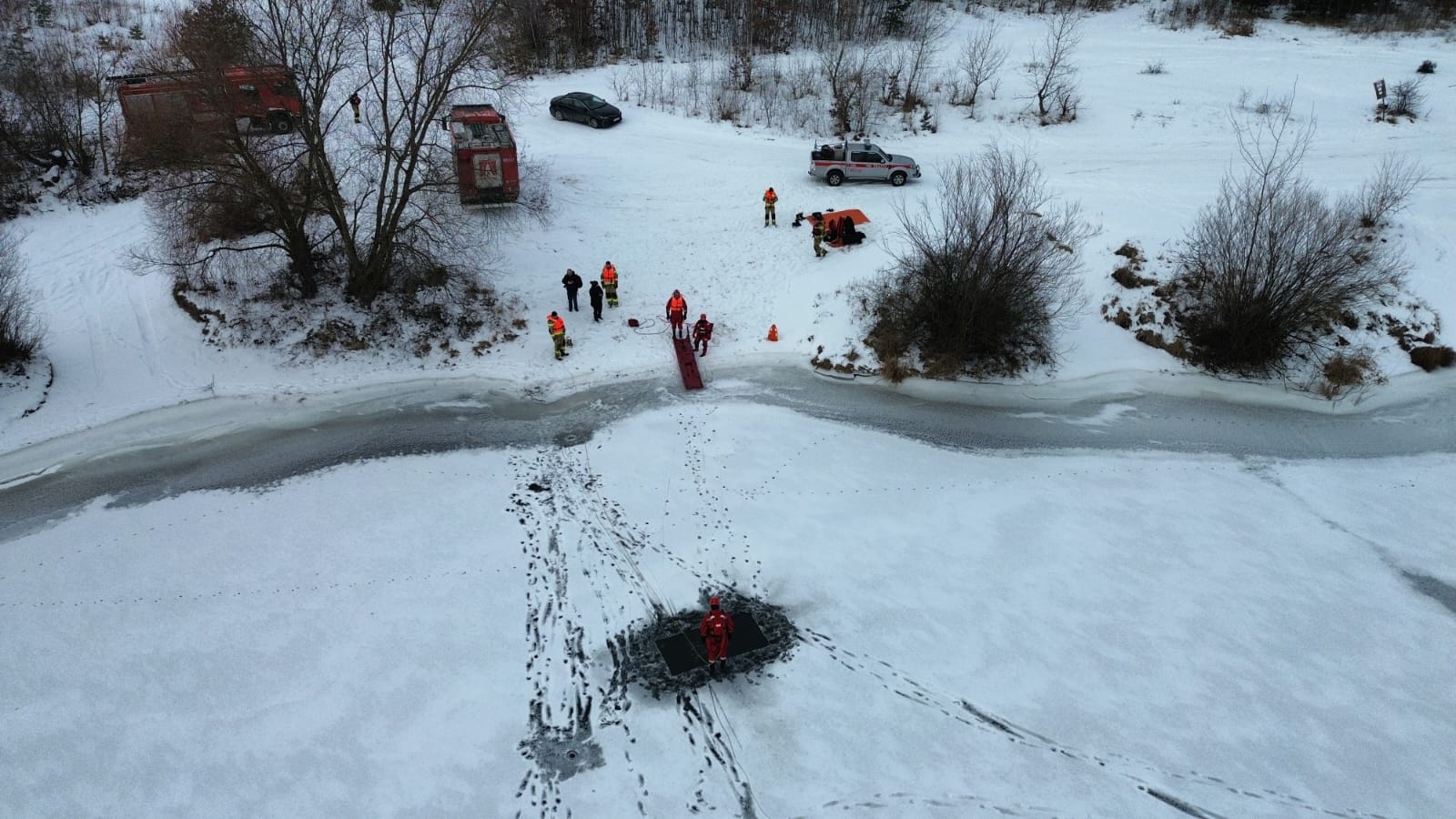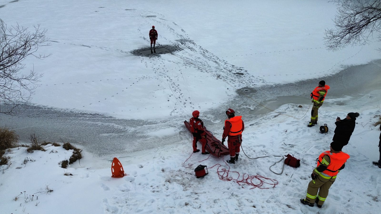 Niebezpieczny lód - strażacy szkolą się do zimowych akcji ratunkowych