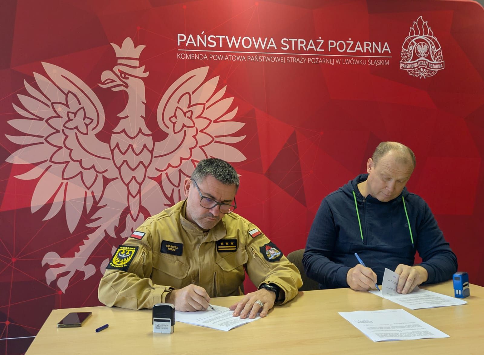 W dniu 9 października 2025 r. w siedzibie Komendy Powiatowej Państwowej Straży Pożarnej została podpisana umowa pomiędzy Zamawiającym – Komendą Powiatową Państwowej Straży Pożarnej w Lwówku Śląskim , reprezentowaną przez st. bryg. mgr inż. Mariusz Mróz - Komendant Powiatowy Państwowej Straży Pożarnej w Lwówku Śląskim , a Wykonawcą – ELPAW Jerzy Pawłowski, ul. Batorego 50/65, 33-300 Nowy Sącz, na realizację części dotyczącej zadania pod nazwą: