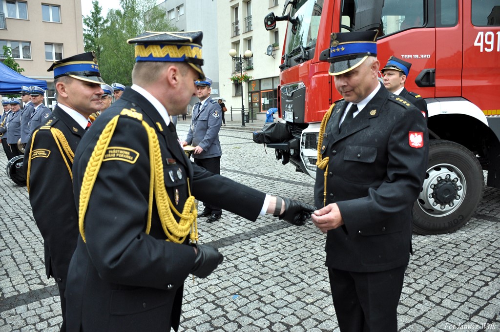 Gospodarzami uroczystości był Komendant Powiatowy Państwowej Straży Pożarnej st. bryg. Mariusz Mróz oraz Prezes Zarządu Oddziału Powiatowego Związku Ochotniczych Straży Pożarnych RP druh Krzysztof Król.