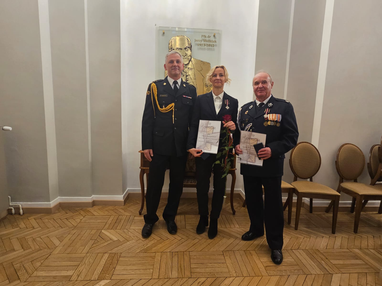 W dniu 19 listopada 2024r. w Sali Kolumnowej Dolnośląskiego Urzędu Wojewódzkiego we Wrocławiu, odbyła się zbiórka z okazji Narodowego Święta Niepodległości. Podczas uroczystości dwoje strażaków z powiatu lwóweckiego uhonorowanych zostało przez Ministra Spraw Wewnętrznych i Administracji Odznaką Świętego Floriana „Za zasługi dla społeczności lokalnej”